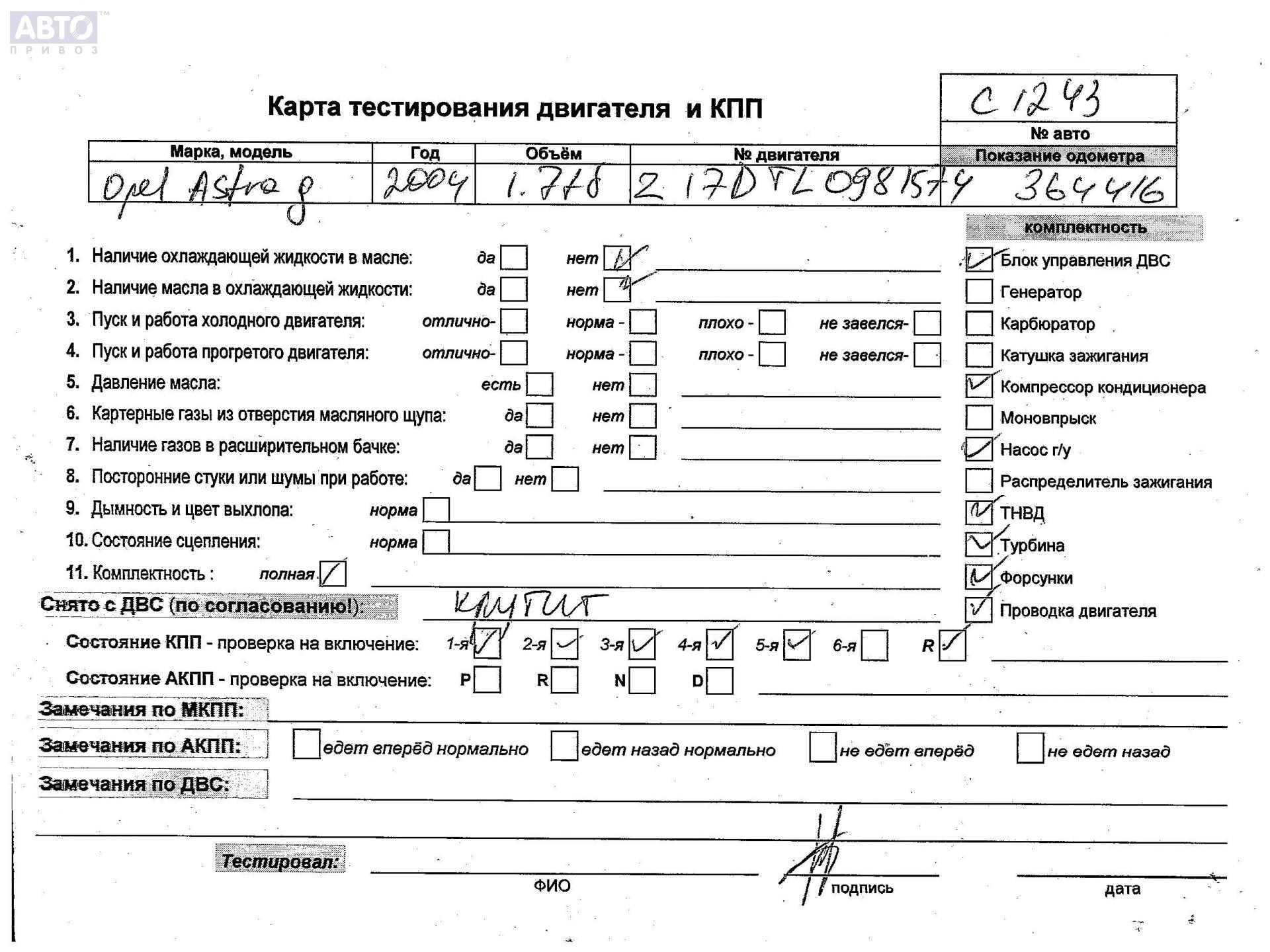| Автомобиль / VIN: | C1243 W0L0TGF3542186164 |
