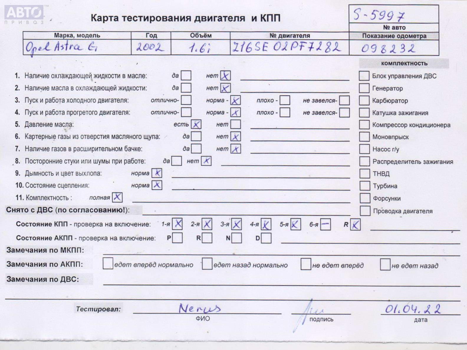 | Марка / Модель / Год: | Opel Astra G (1998-2004) 2002 |
