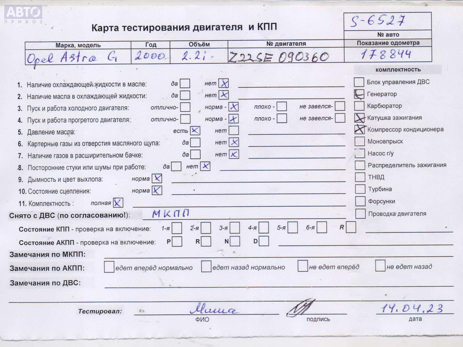 | Автомобиль / VIN: | S6527 W0L0TGF07YB012080 |
