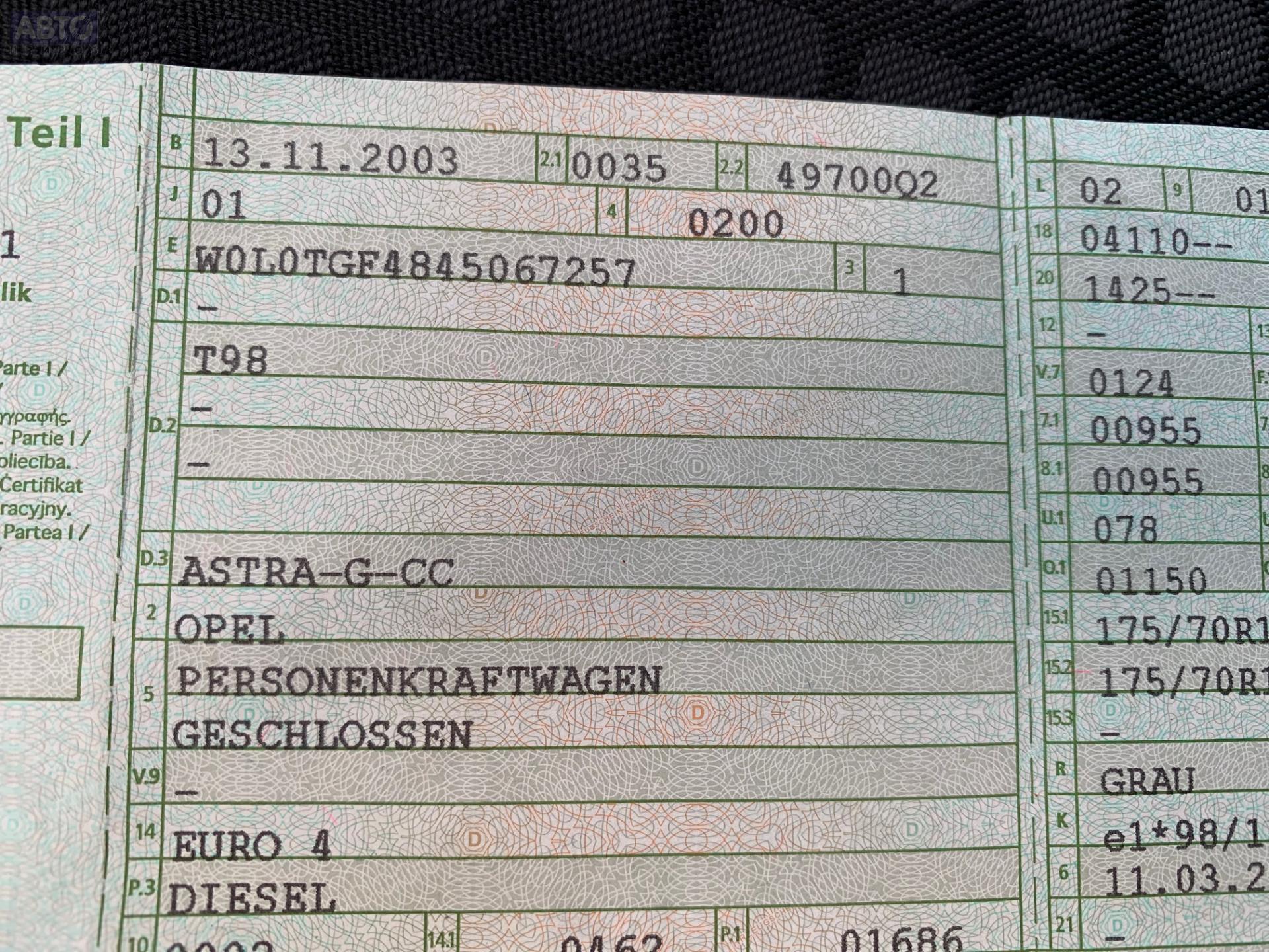 | Марка / Модель / Год: | Opel Astra G (1998-2004) 2003 |