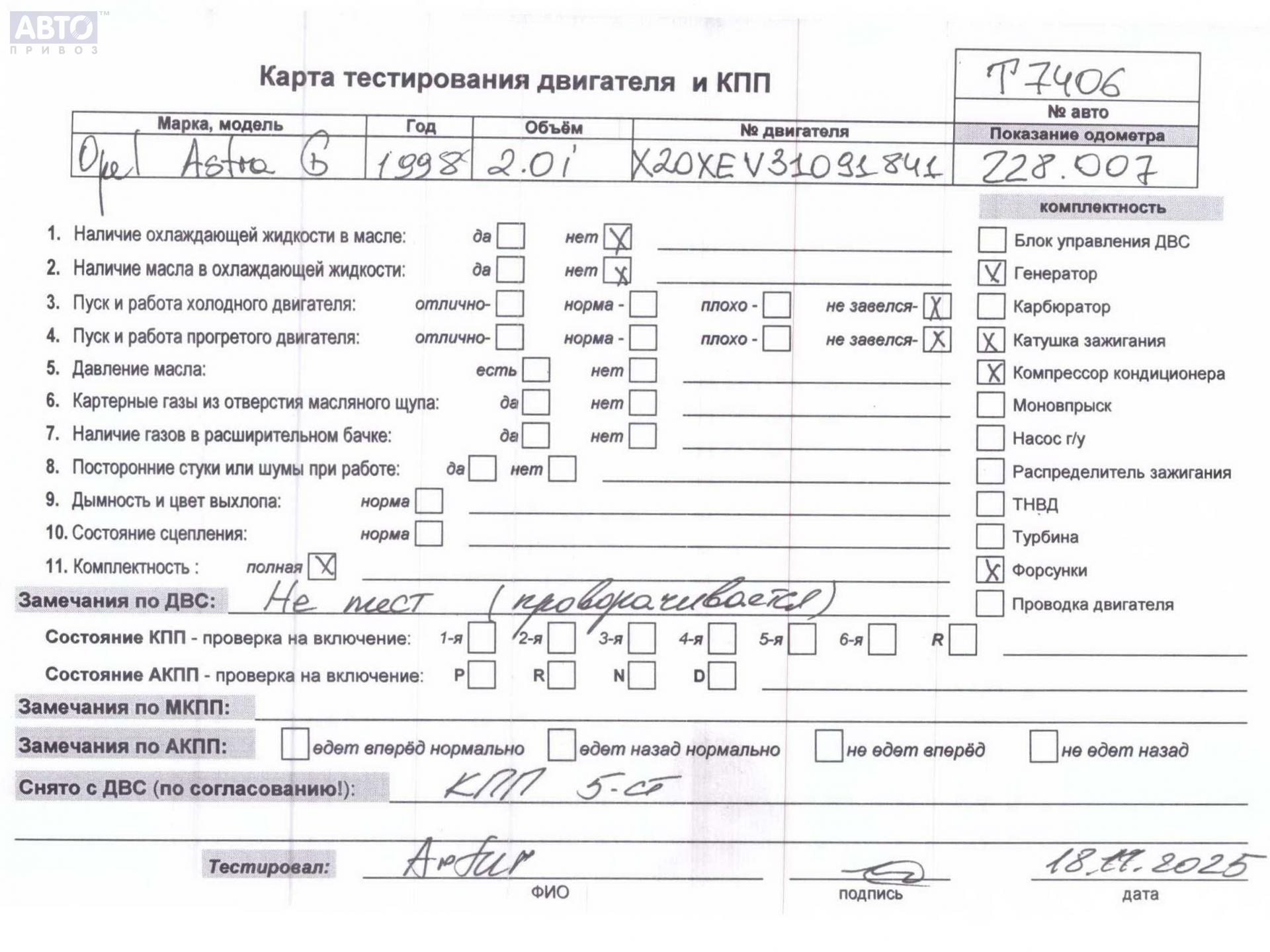| Автомобиль / VIN: | T7406 W0L0TGF35Y2030032 |
