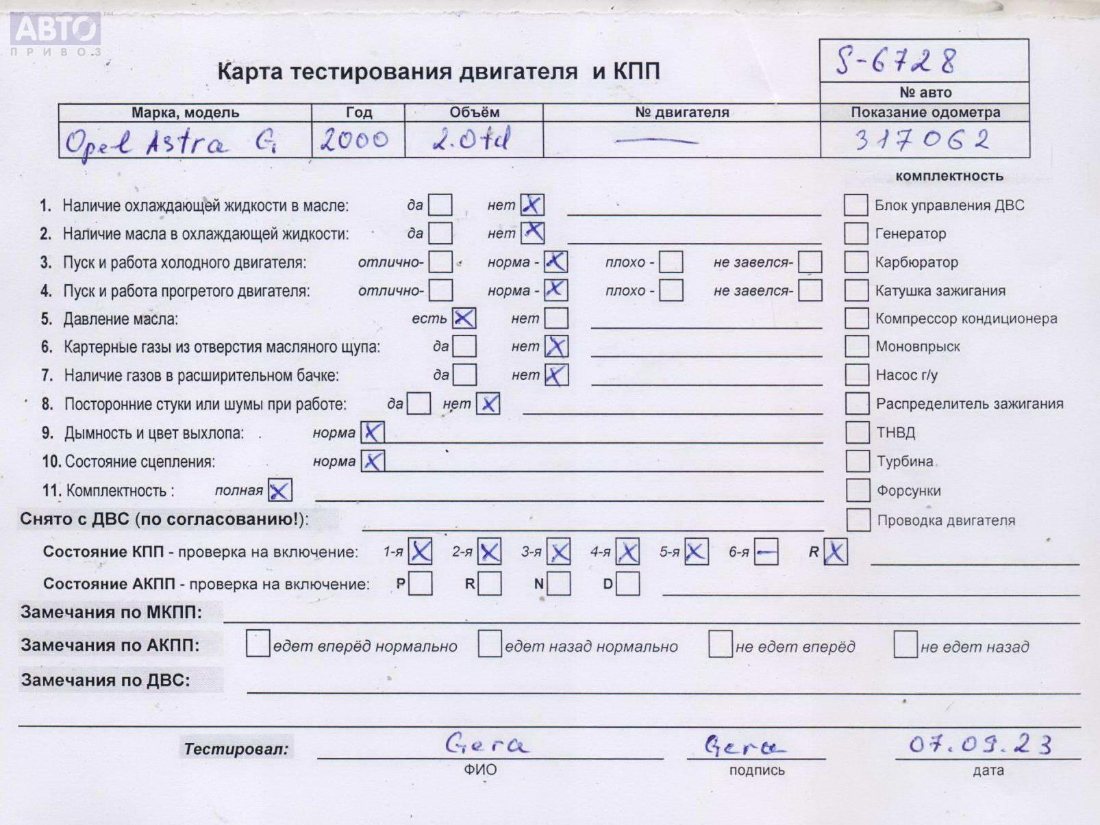 | Марка / Модель / Год: | Opel Astra G (1998-2004) 2000 |