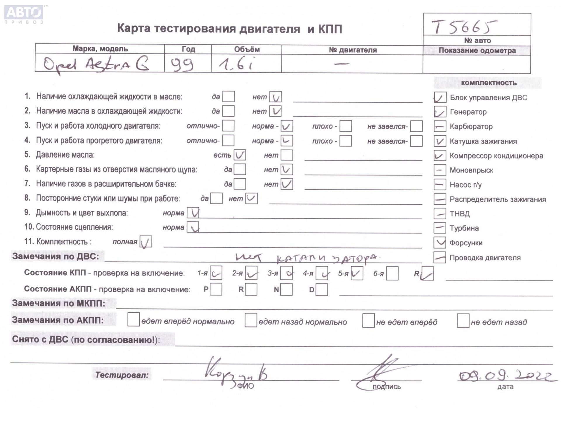 | Марка / Модель / Год: | Opel Astra G (1998-2004) 1999 |