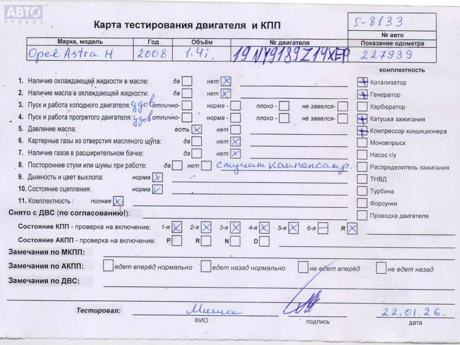 | Марка / Модель / Год: | Opel Astra H (2004-2009) 2008 |