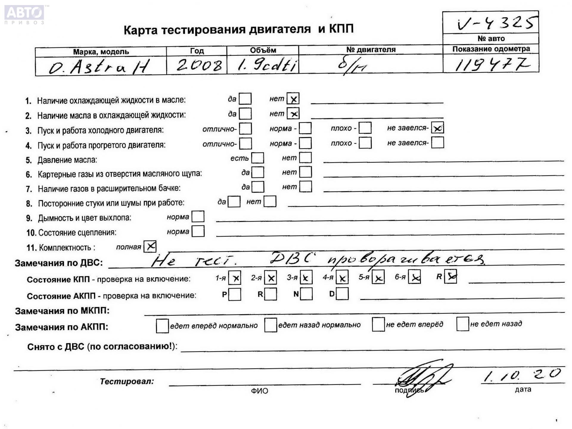 | Марка / Модель / Год: | Opel Astra H (2004-2009) 2008 |