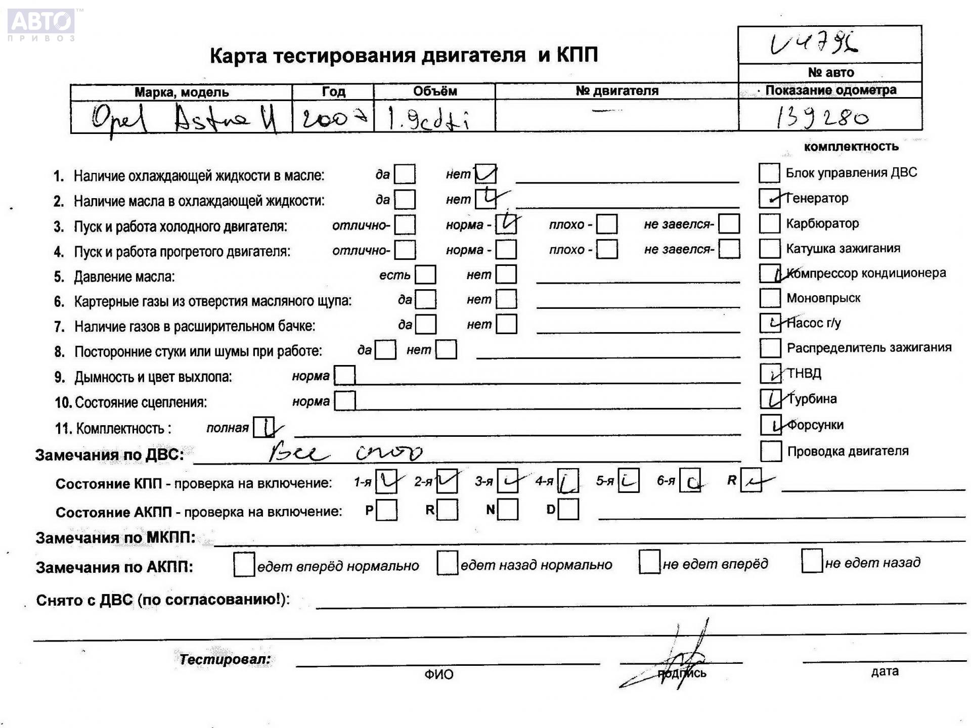 | Марка / Модель / Год: | Opel Astra H (2004-2009) 2007 |