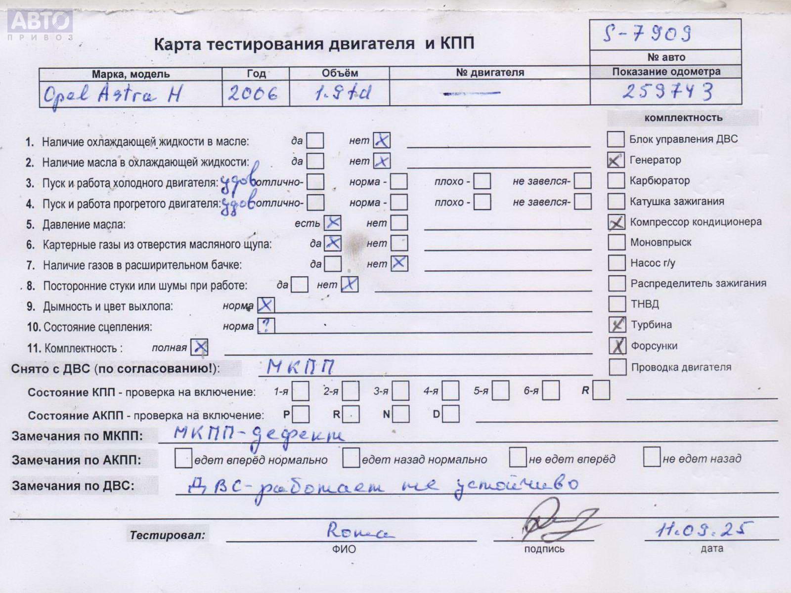 | Марка / Модель / Год: | Opel Astra H (2004-2009) 2006 |