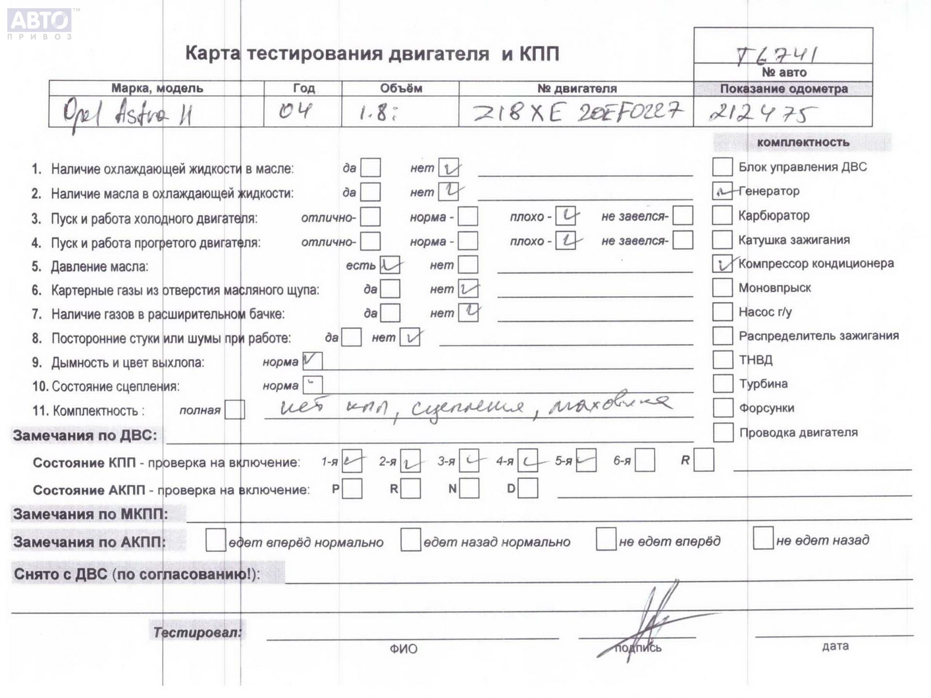 | Марка / Модель / Год: | Opel Astra H (2004-2009) 2004 |