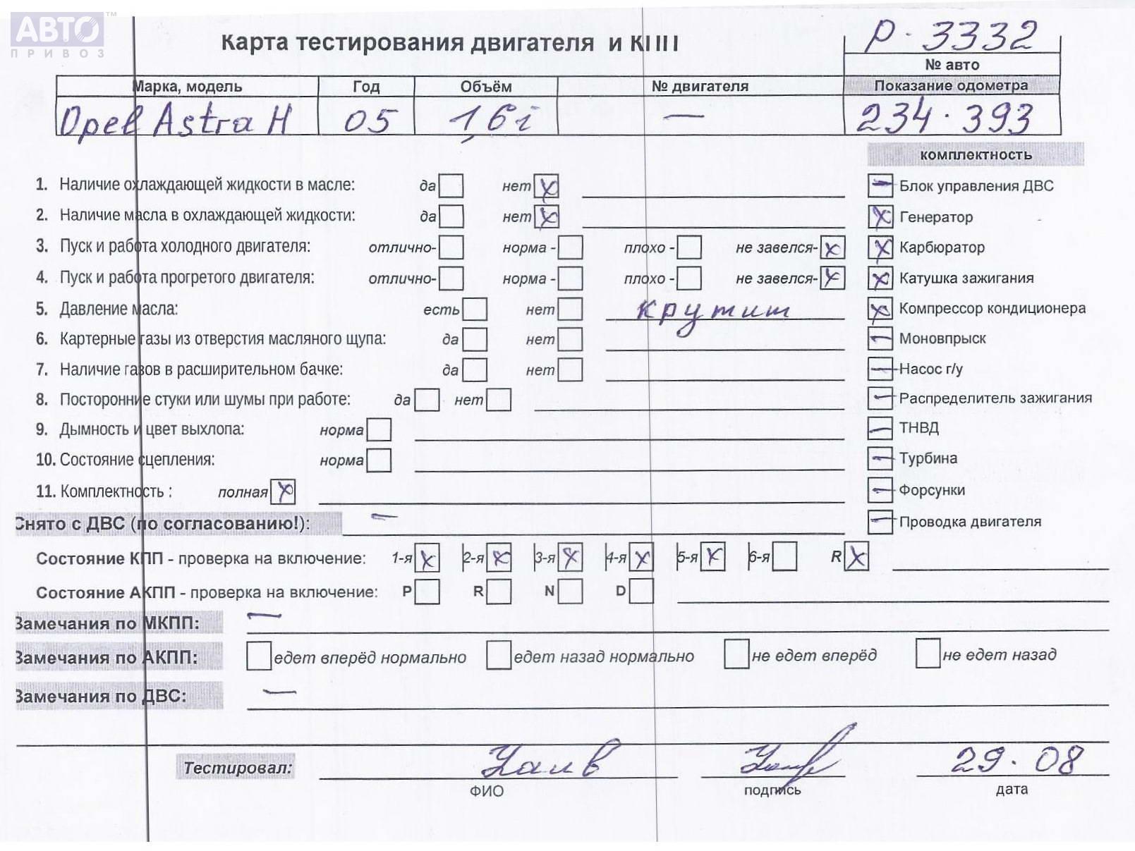 | Марка / Модель / Год: | Opel Astra H (2004-2009) 2005 |
