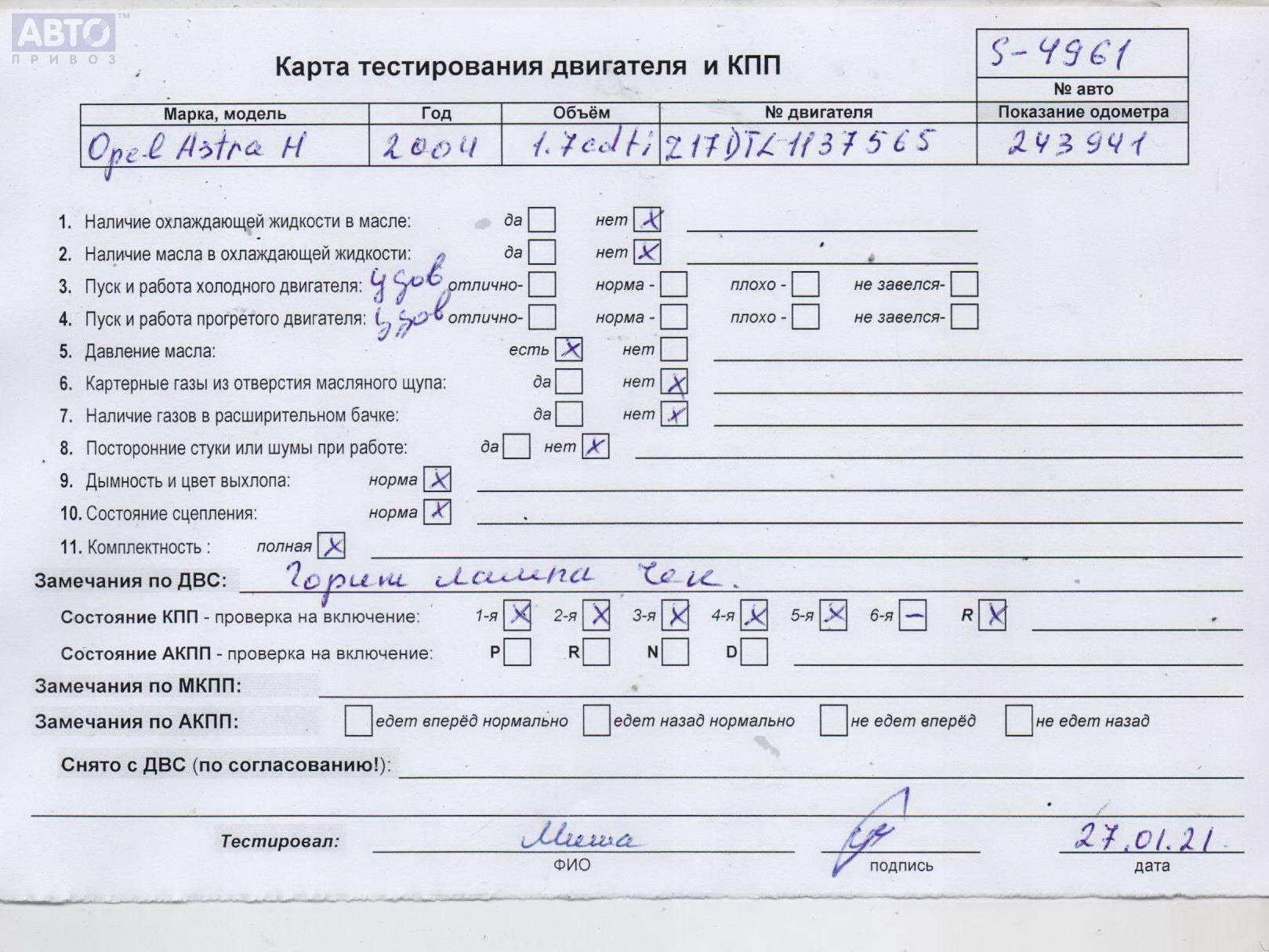 | Марка / Модель / Год: | Opel Astra H (2004-2009) 2004 |