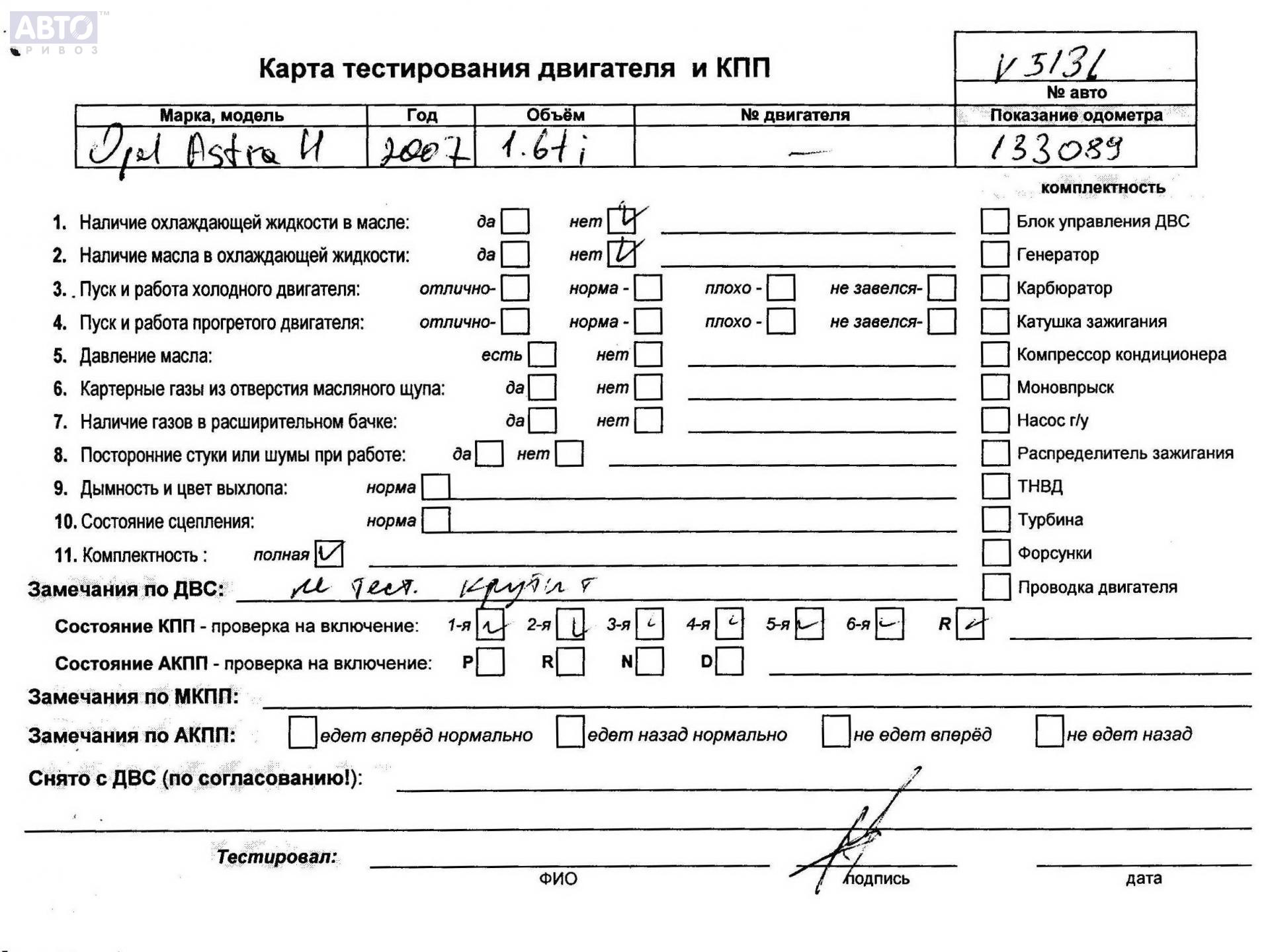 | Марка / Модель / Год: | Opel Astra H (2004-2009) 2007 |