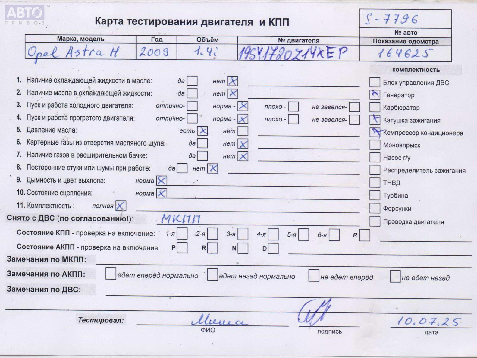 | Марка / Модель / Год: | Opel Astra H (2004-2009) 2009 |