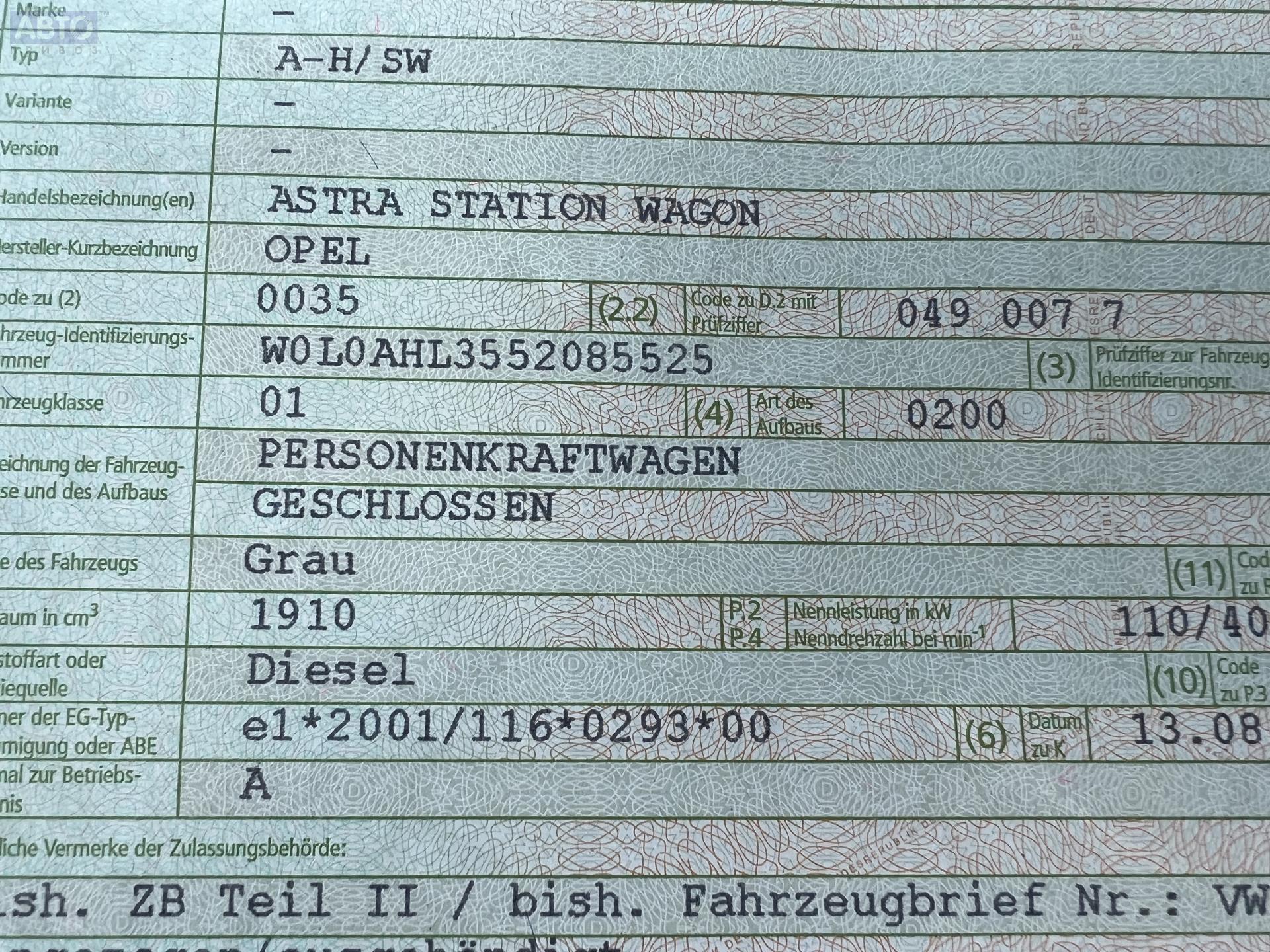 | Автомобиль / VIN: | T5574 W0L0AHL3552085525 |