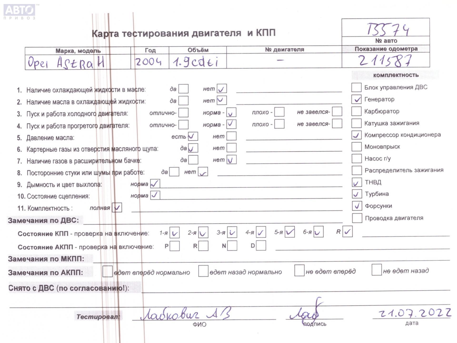 | Марка / Модель / Год: | Opel Astra H (2004-2009) 2004 |