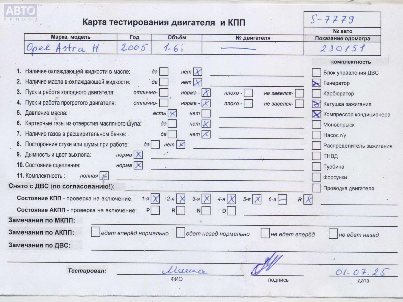 | Марка / Модель / Год: | Opel Astra H (2004-2009) 2005 |