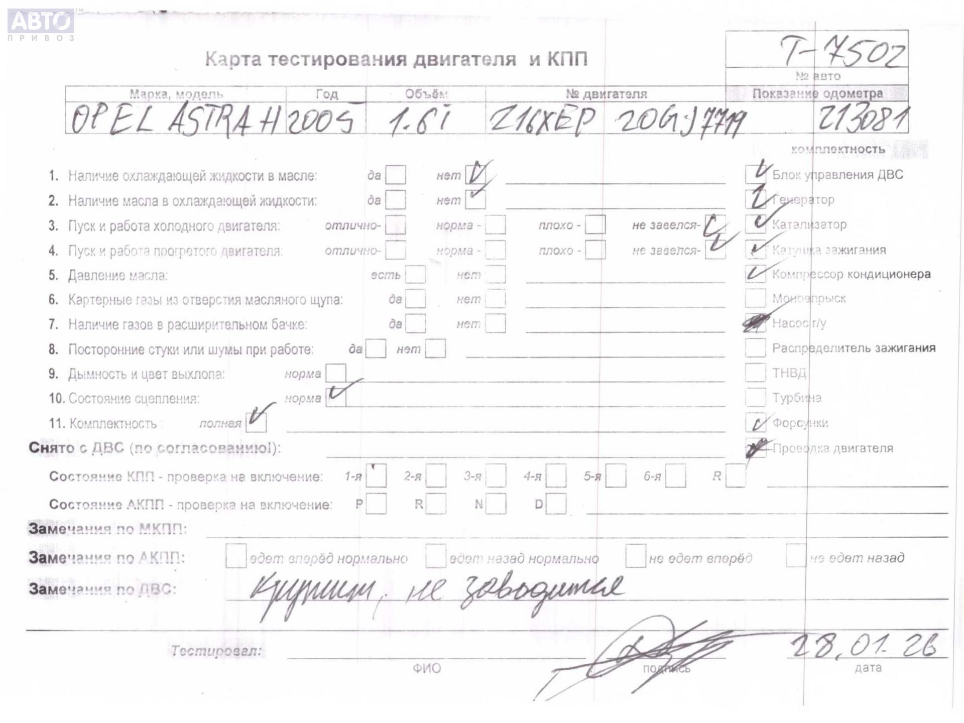 | Марка / Модель / Год: | Opel Astra H (2004-2009) 2005 |