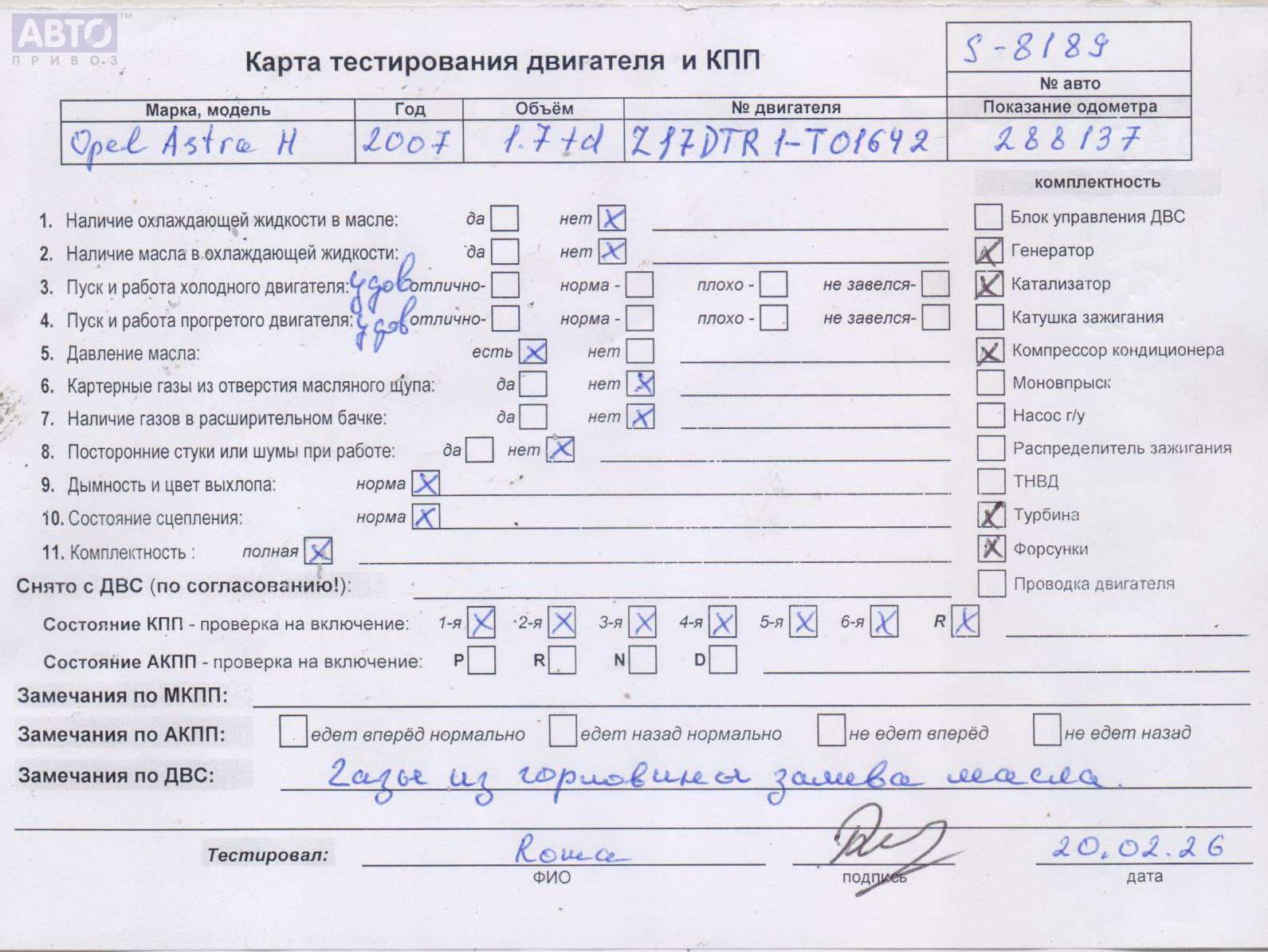 | Марка / Модель / Год: | Opel Astra H (2004-2009) 2007 |