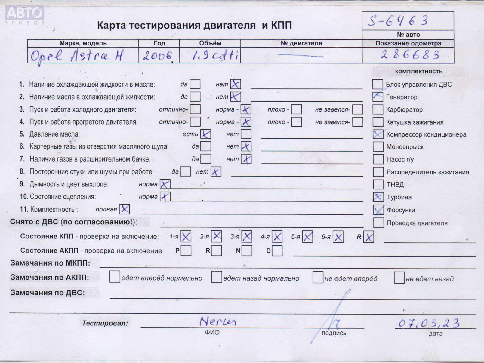 | Марка / Модель / Год: | Opel Astra H (2004-2009) 2006 |