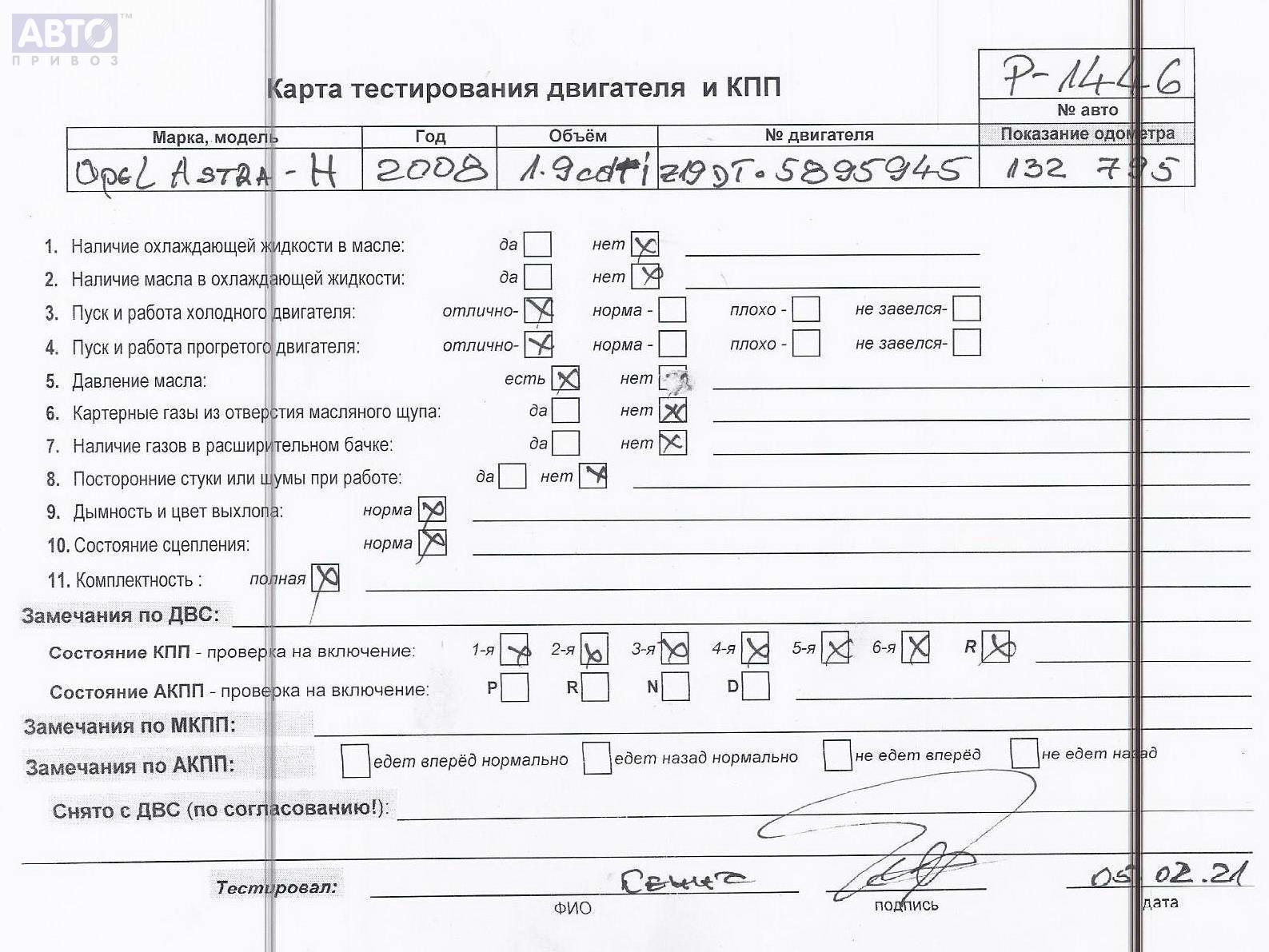 | Марка / Модель / Год: | Opel Astra H (2004-2009) 2008 |