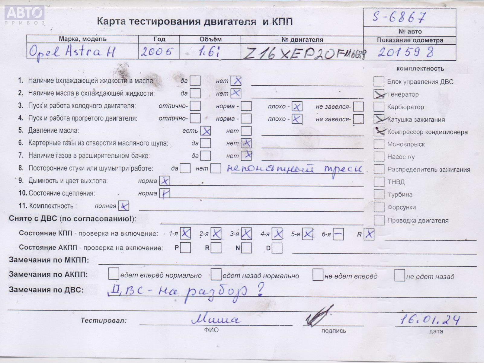 | Марка / Модель / Год: | Opel Astra H (2004-2009) 2005 |