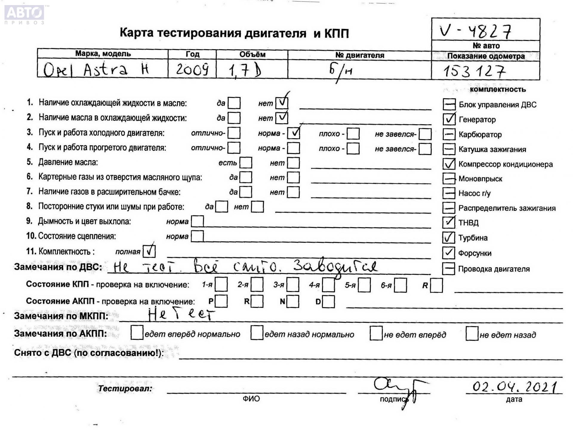 | Марка / Модель / Год: | Opel Astra H (2004-2009) 2009 |