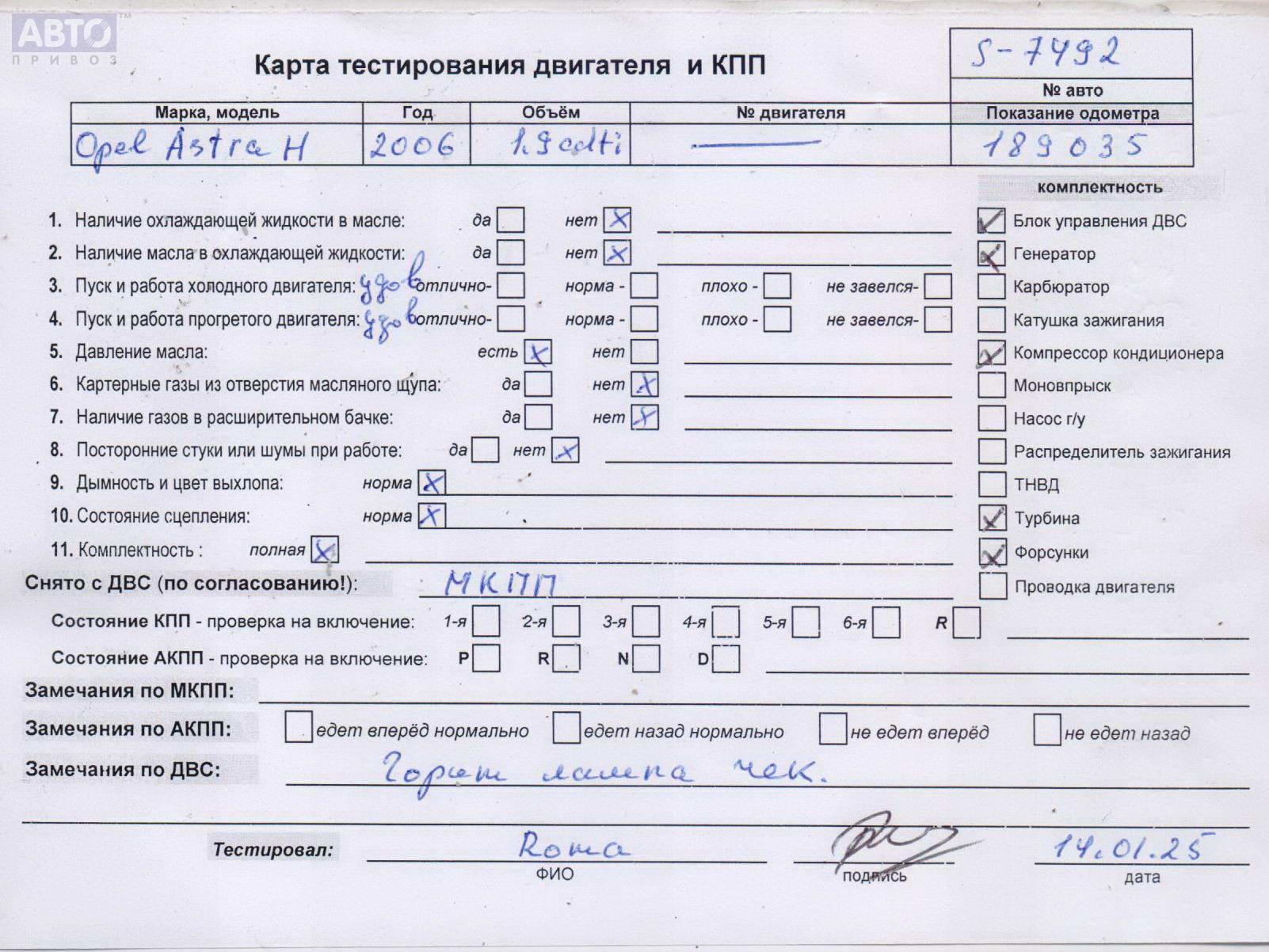 | Марка / Модель / Год: | Opel Astra H (2004-2009) 2006 |