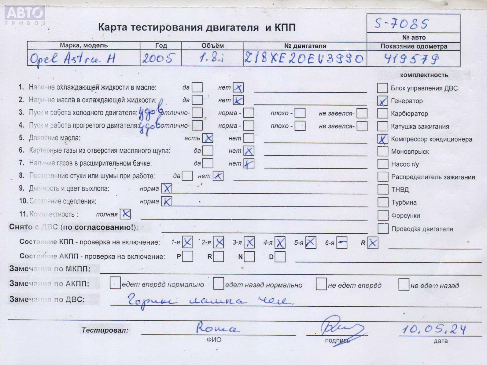 | Марка / Модель / Год: | Opel Astra H (2004-2009) 2005 |
