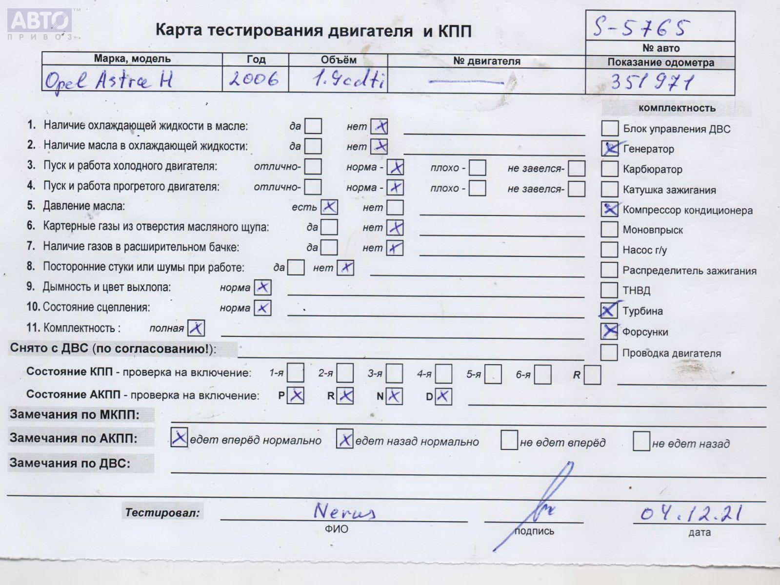 | Марка / Модель / Год: | Opel Astra H (2004-2009) 2006 |