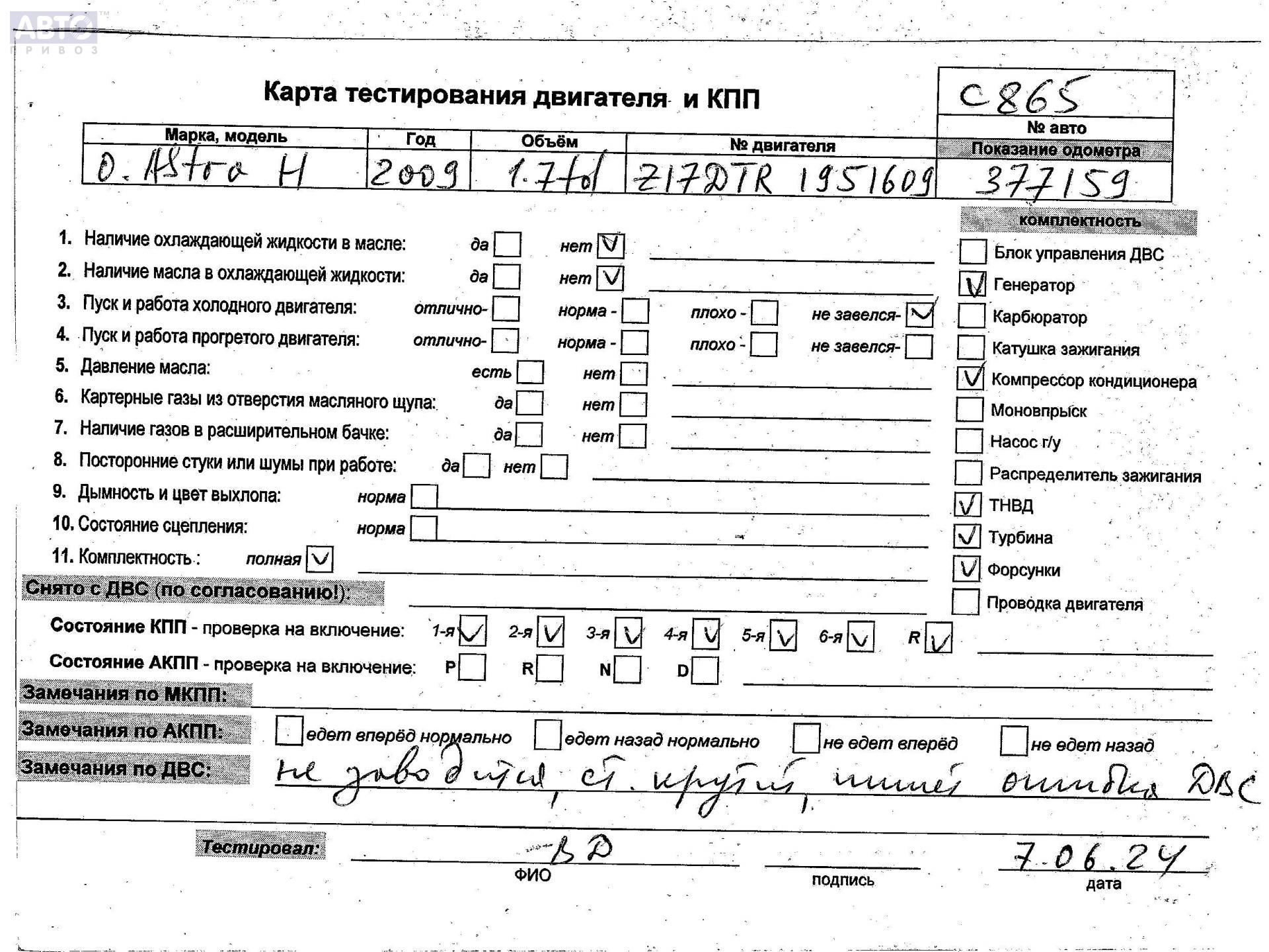 | Марка / Модель / Год: | Opel Astra H (2004-2009) 2009 |