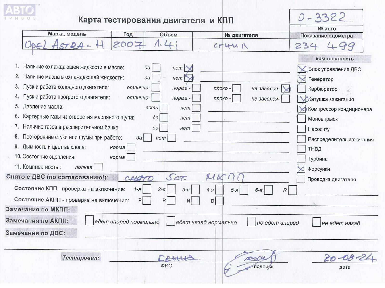 | Марка / Модель / Год: | Opel Astra H (2004-2009) 2007 |