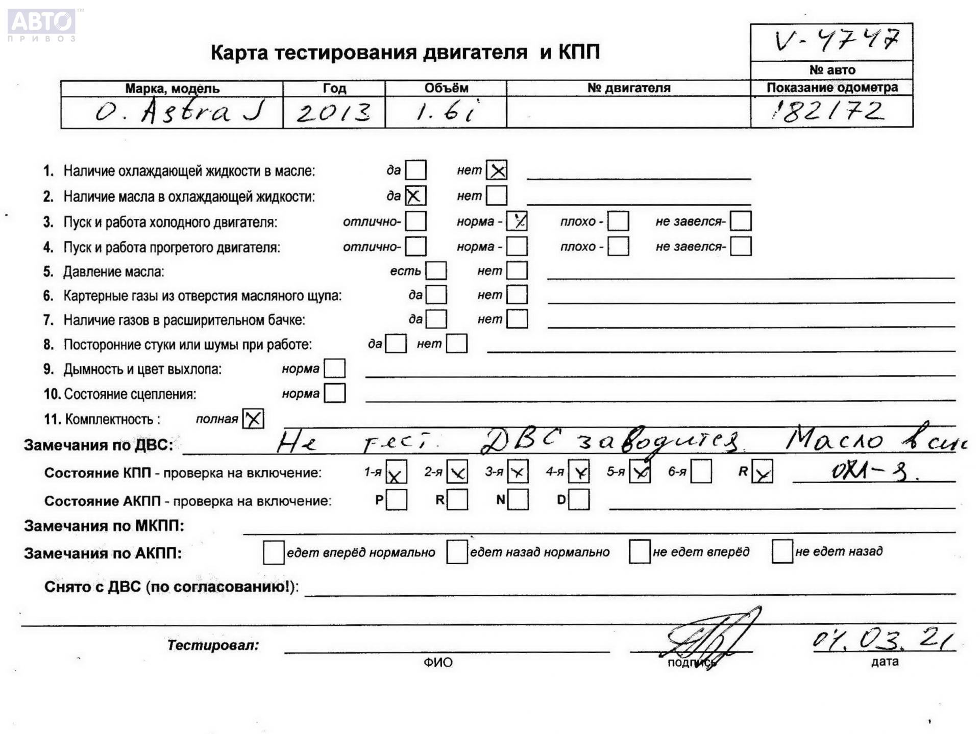 | Марка / Модель / Год: | Opel Astra J (2009-2015) 2013 |