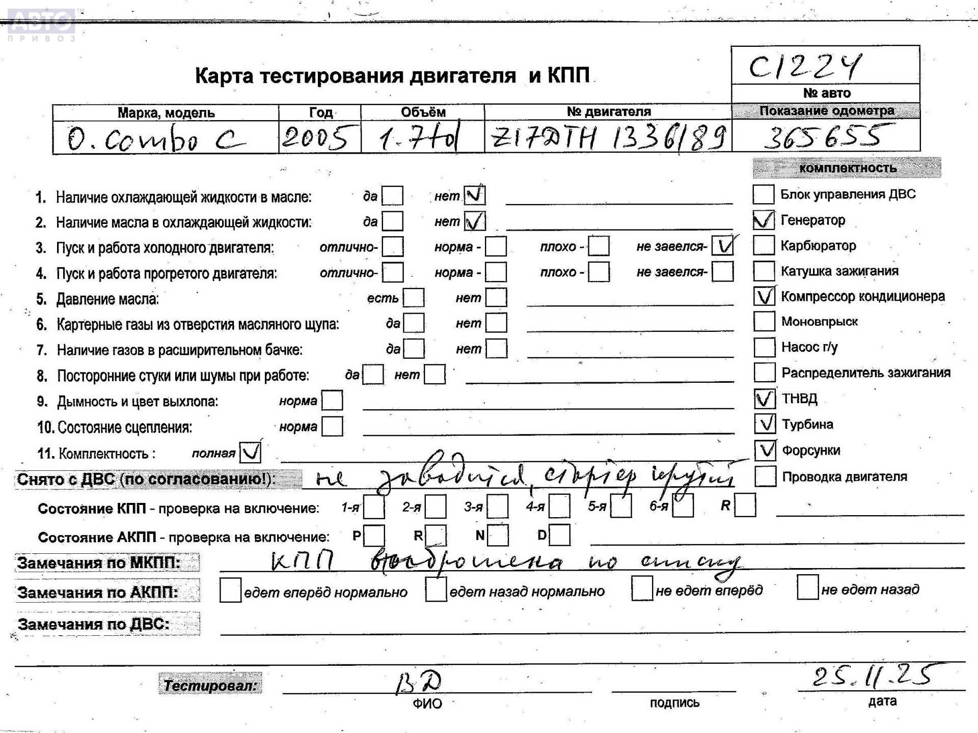 | Марка / Модель / Год: | Opel Combo C (2001-2011) 2005 |