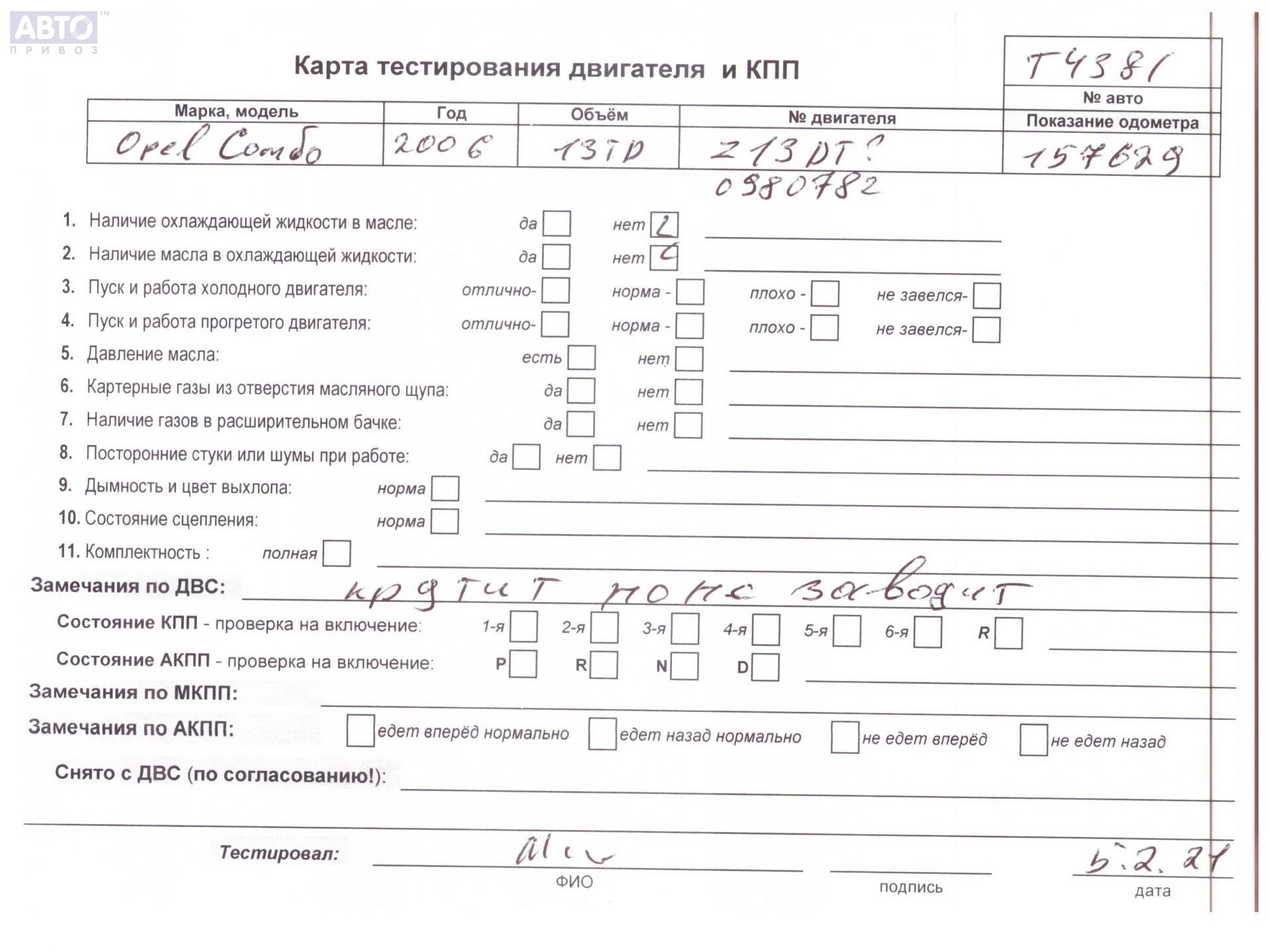 | Марка / Модель / Год: | Opel Combo C (2001-2011) 2006 |