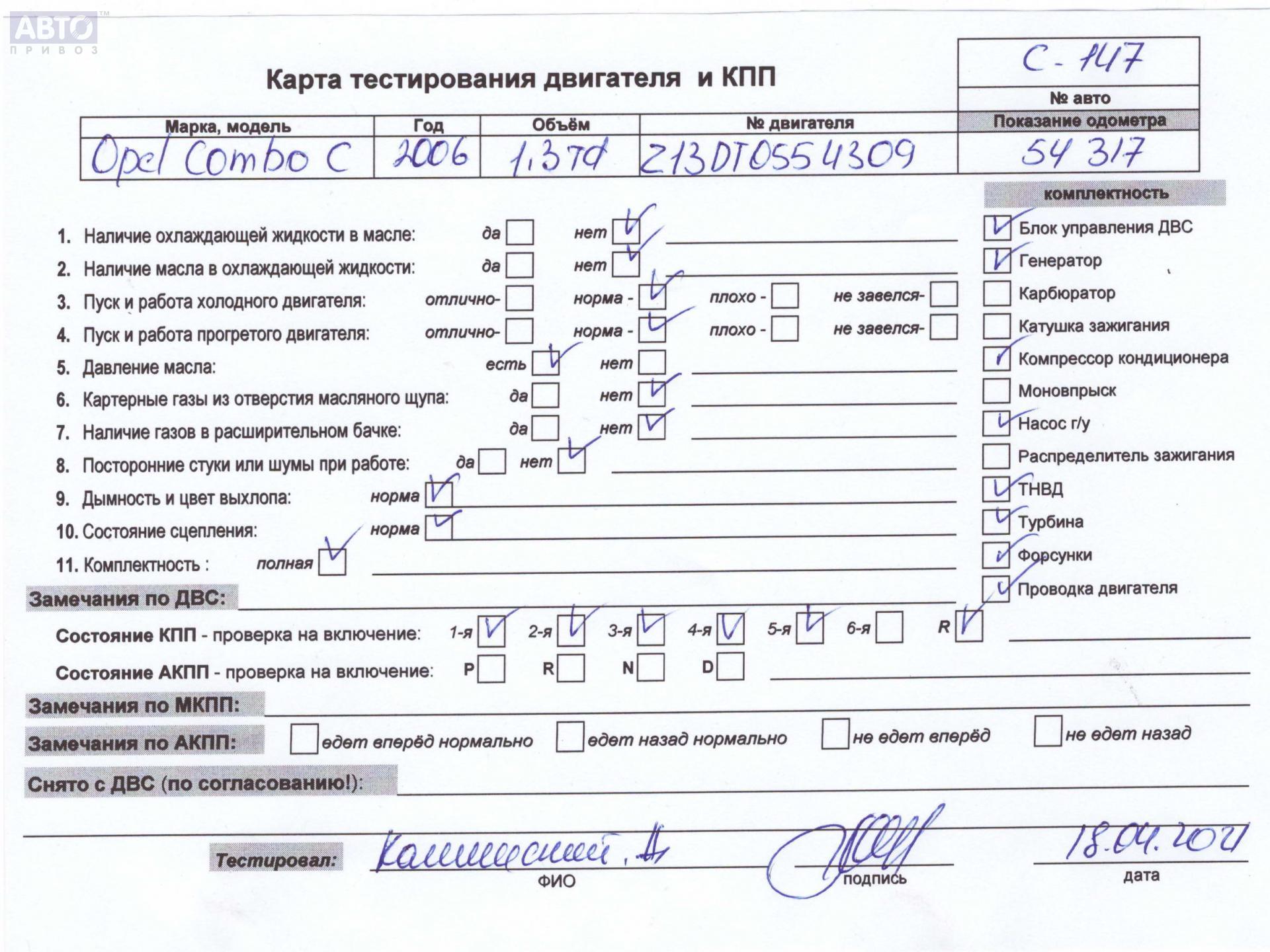 | Марка / Модель / Год: | Opel Combo C (2001-2011) 2005 |