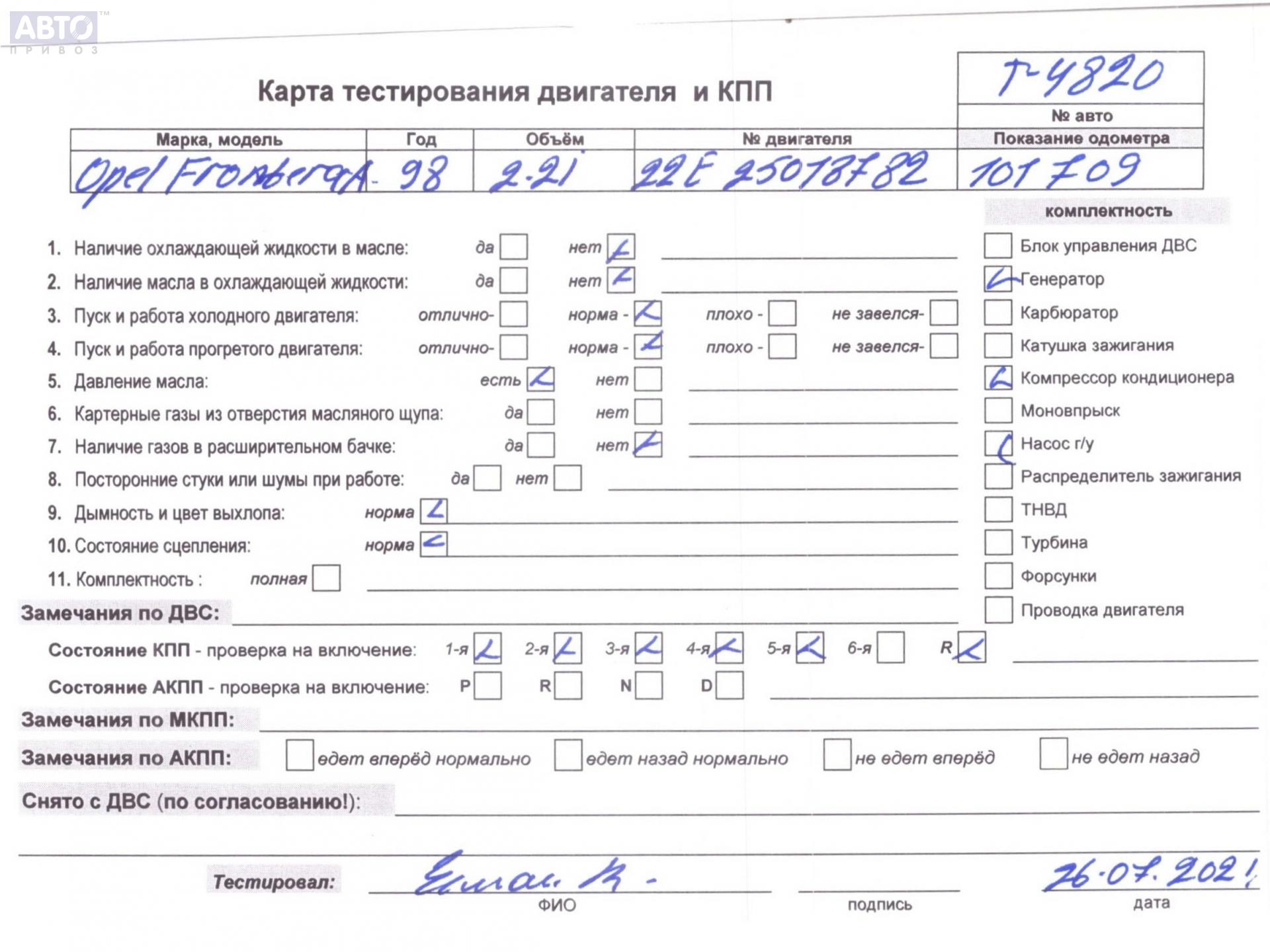 | Марка / Модель / Год: | Opel Frontera A (1989-1997) 1998 |