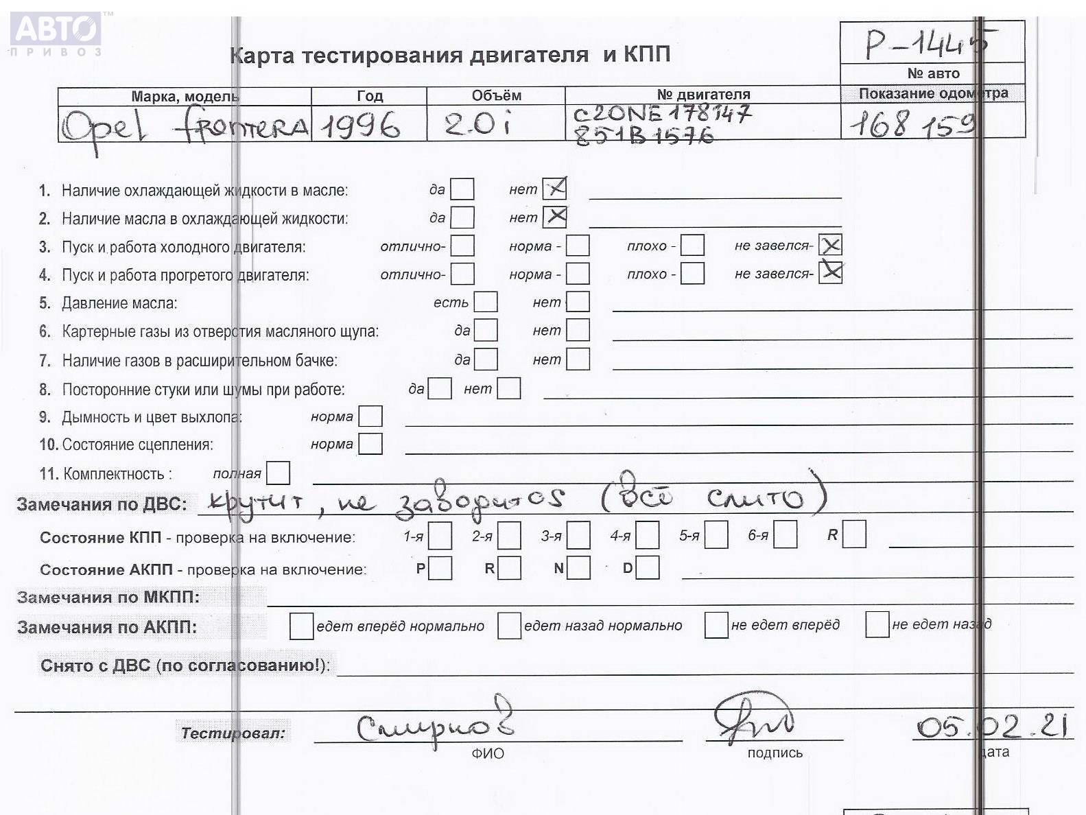 | Марка / Модель / Год: | Opel Frontera A (1989-1997) 1995 |