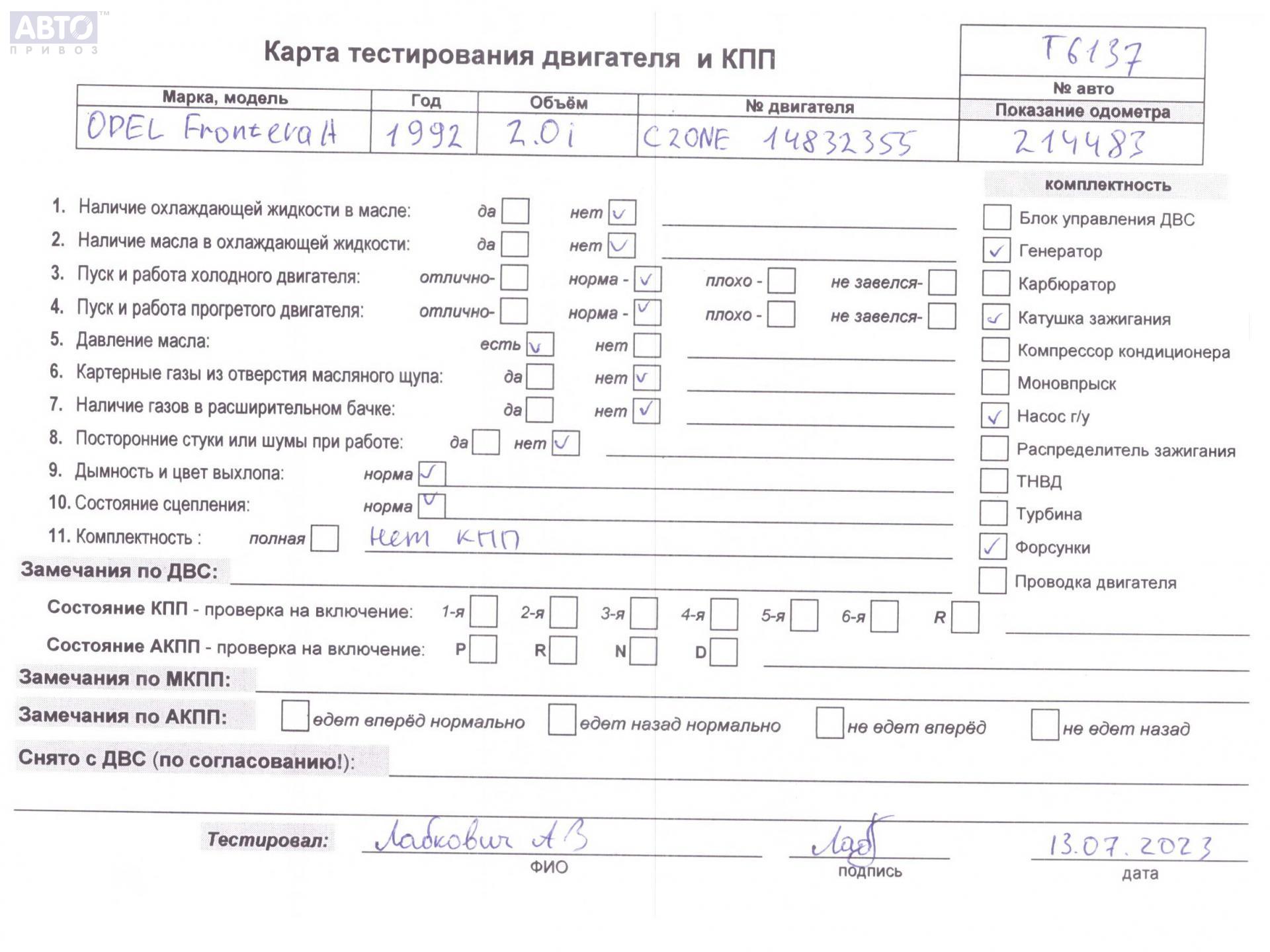| Марка / Модель / Год: | Opel Frontera A (1989-1997) 1992 |