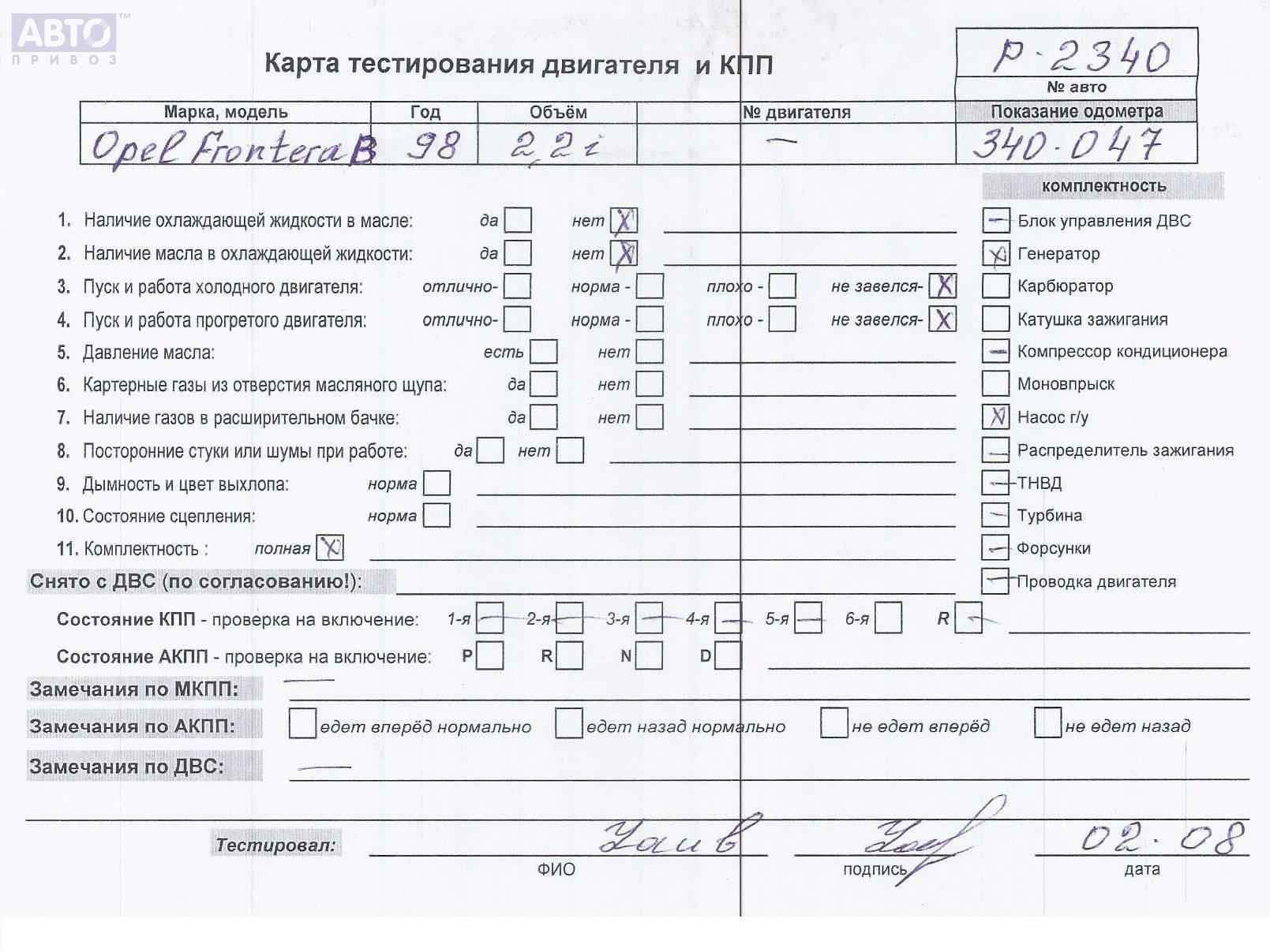 | Марка / Модель / Год: | Opel Frontera B (1998-2003) 1998 |