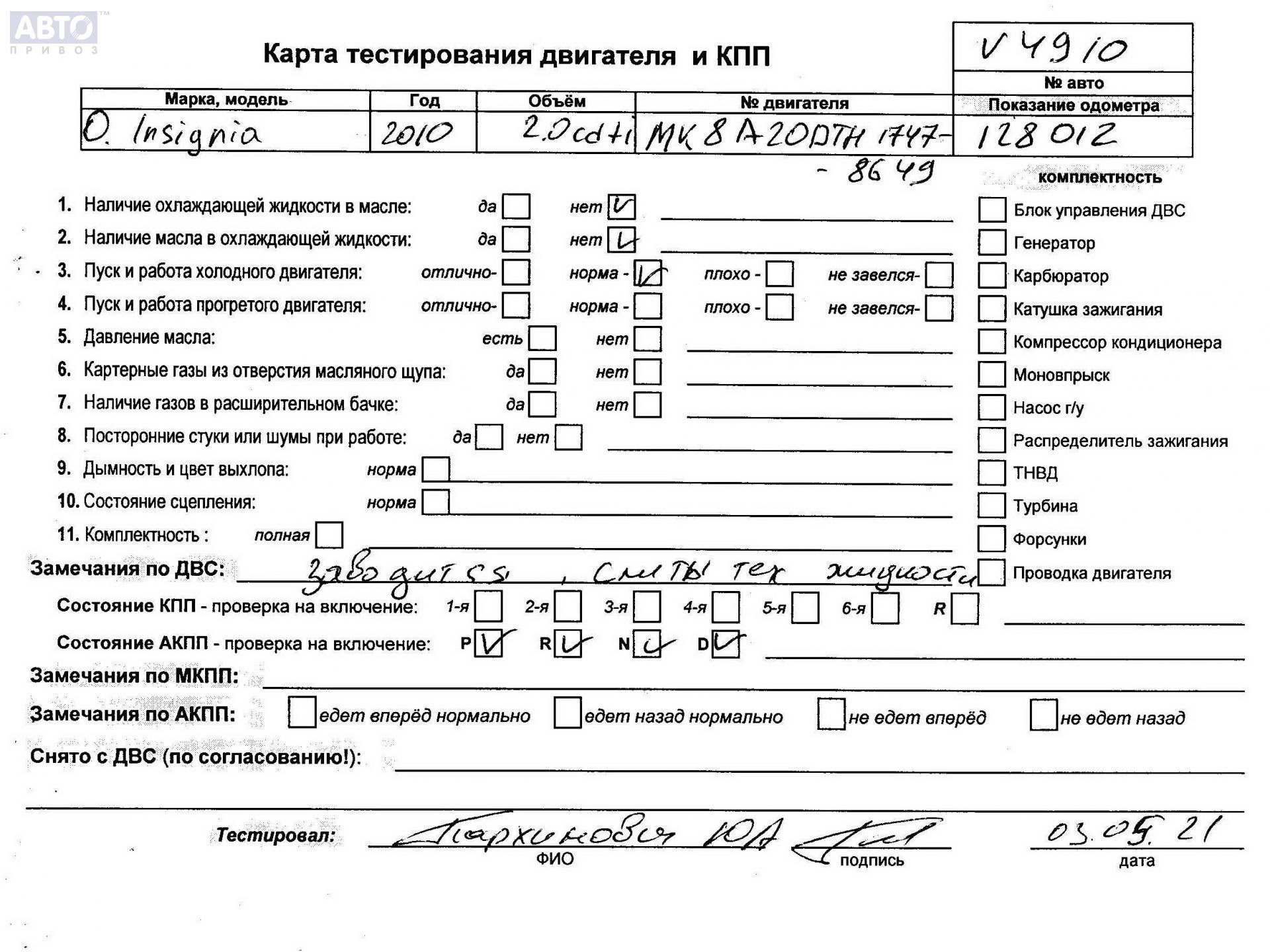 | Автомобиль / VIN: | V4910 W0LGS6EM7B1115021 |