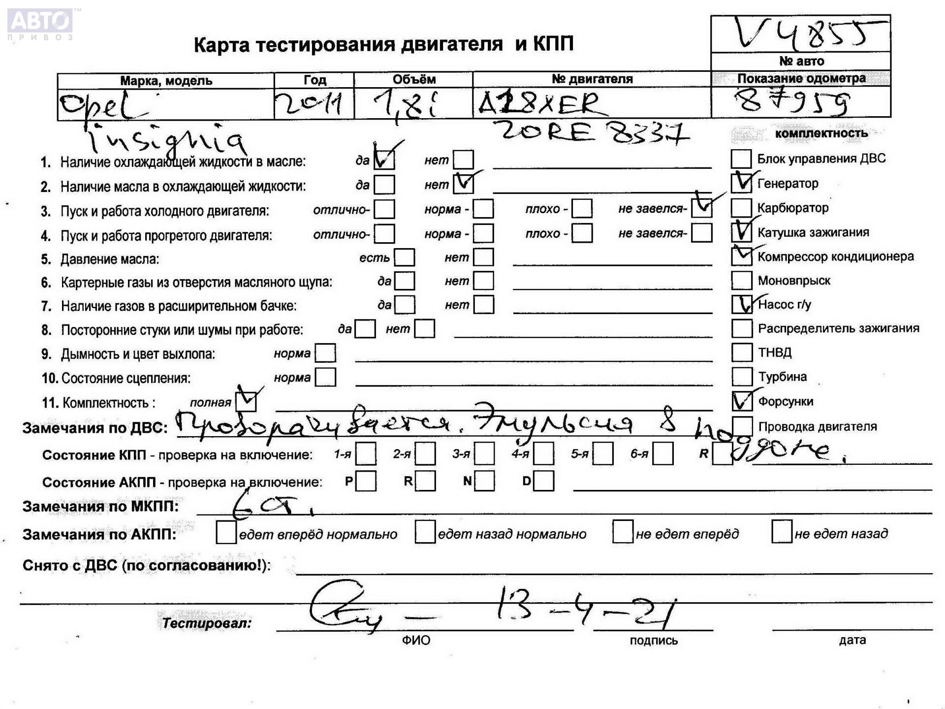 | Марка / Модель / Год: | Opel Insignia A (2008-2017) 2011 |