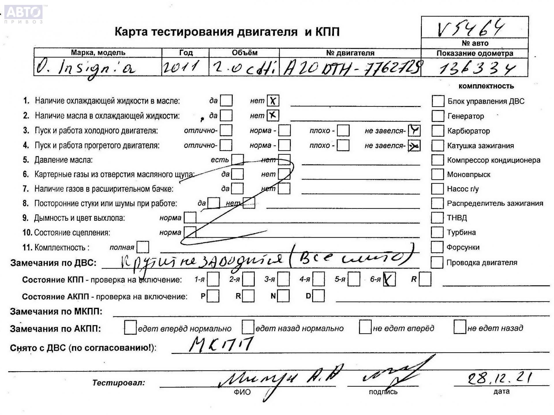 | Марка / Модель / Год: | Opel Insignia A (2008-2017) 2011 |