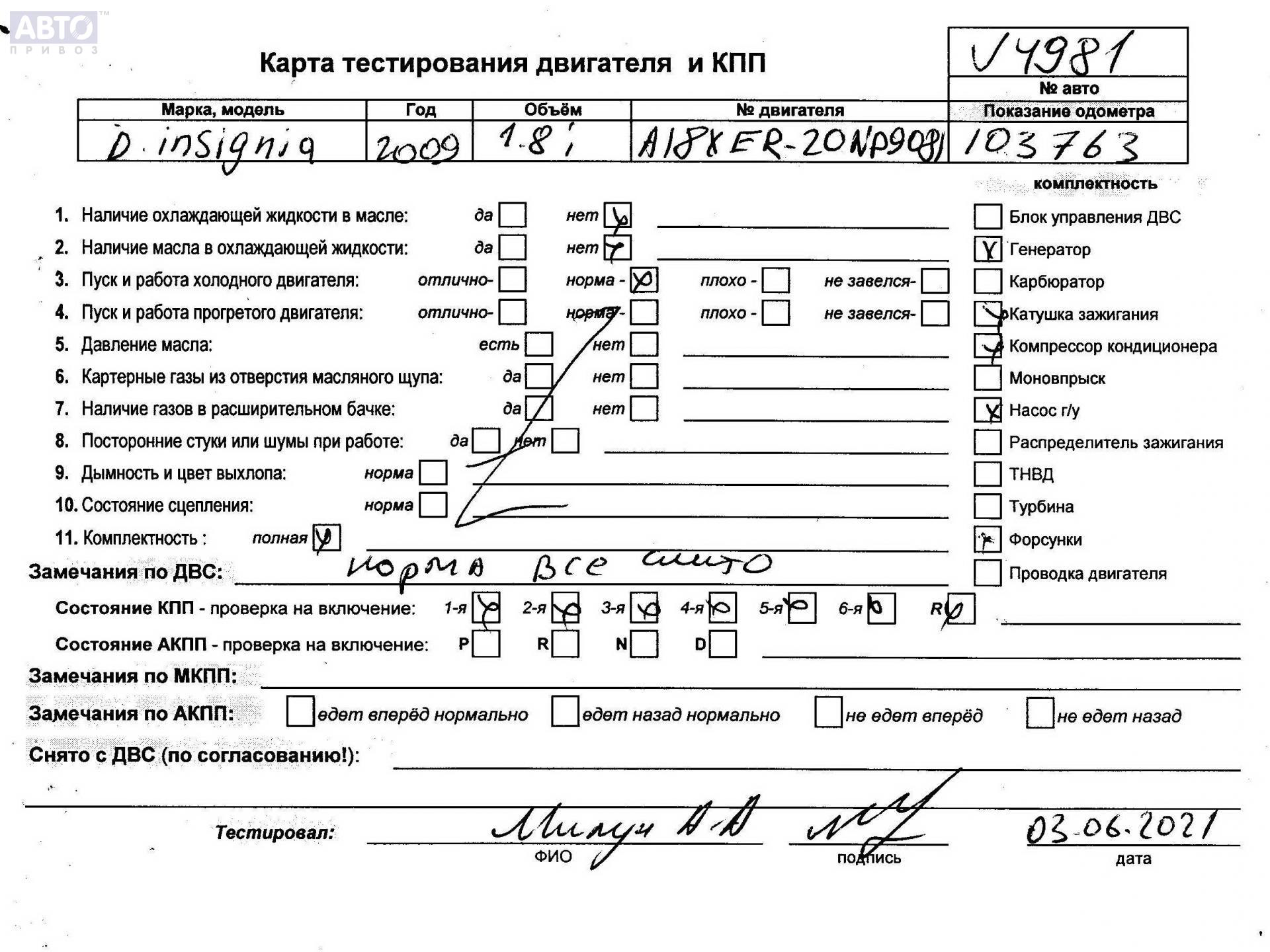 | Автомобиль / VIN: | V4981 W0LGM67C491046667 |