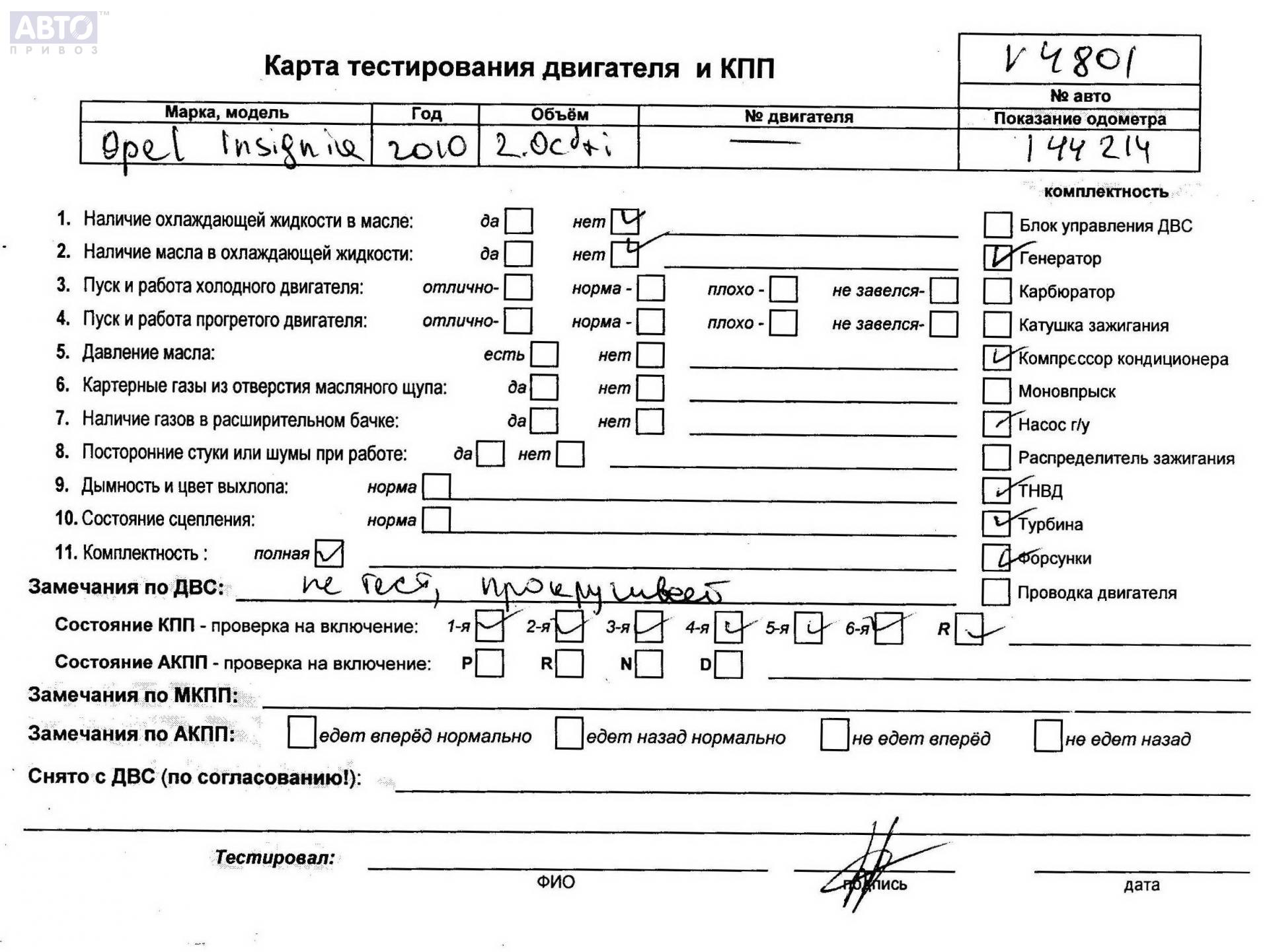 | Марка / Модель / Год: | Opel Insignia A (2008-2017) 2010 |