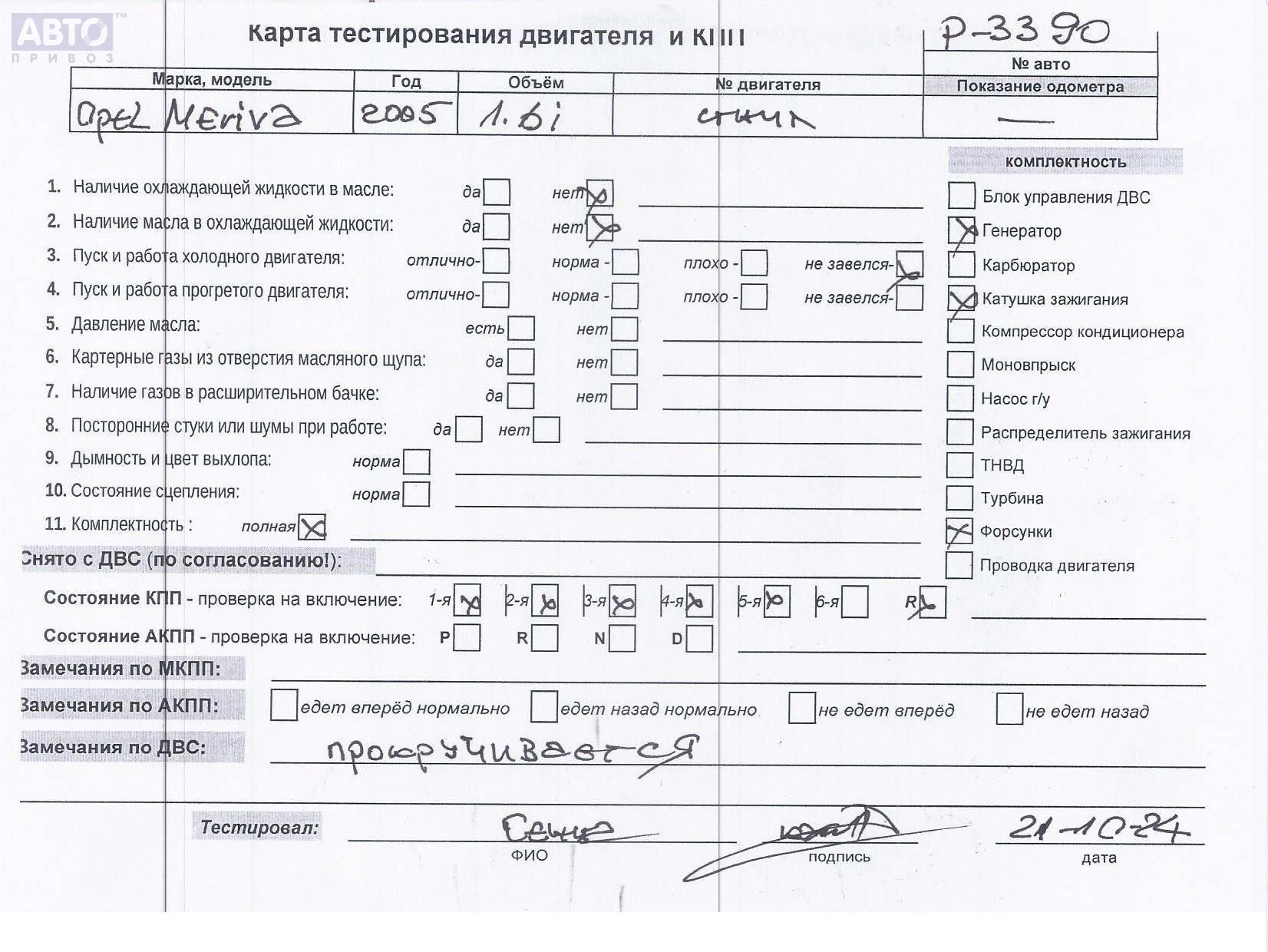 | Марка / Модель / Год: | Opel Meriva A (2003-2010) 2005 |