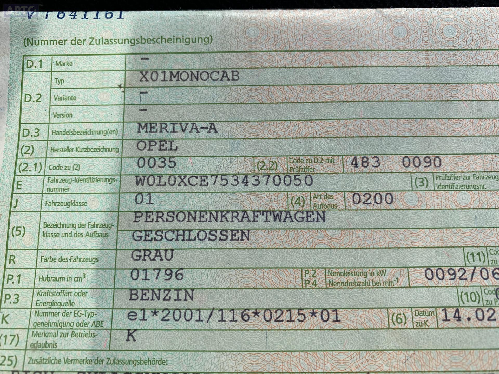 | Марка / Модель / Год: | Opel Meriva A (2003-2010) 2003 |
