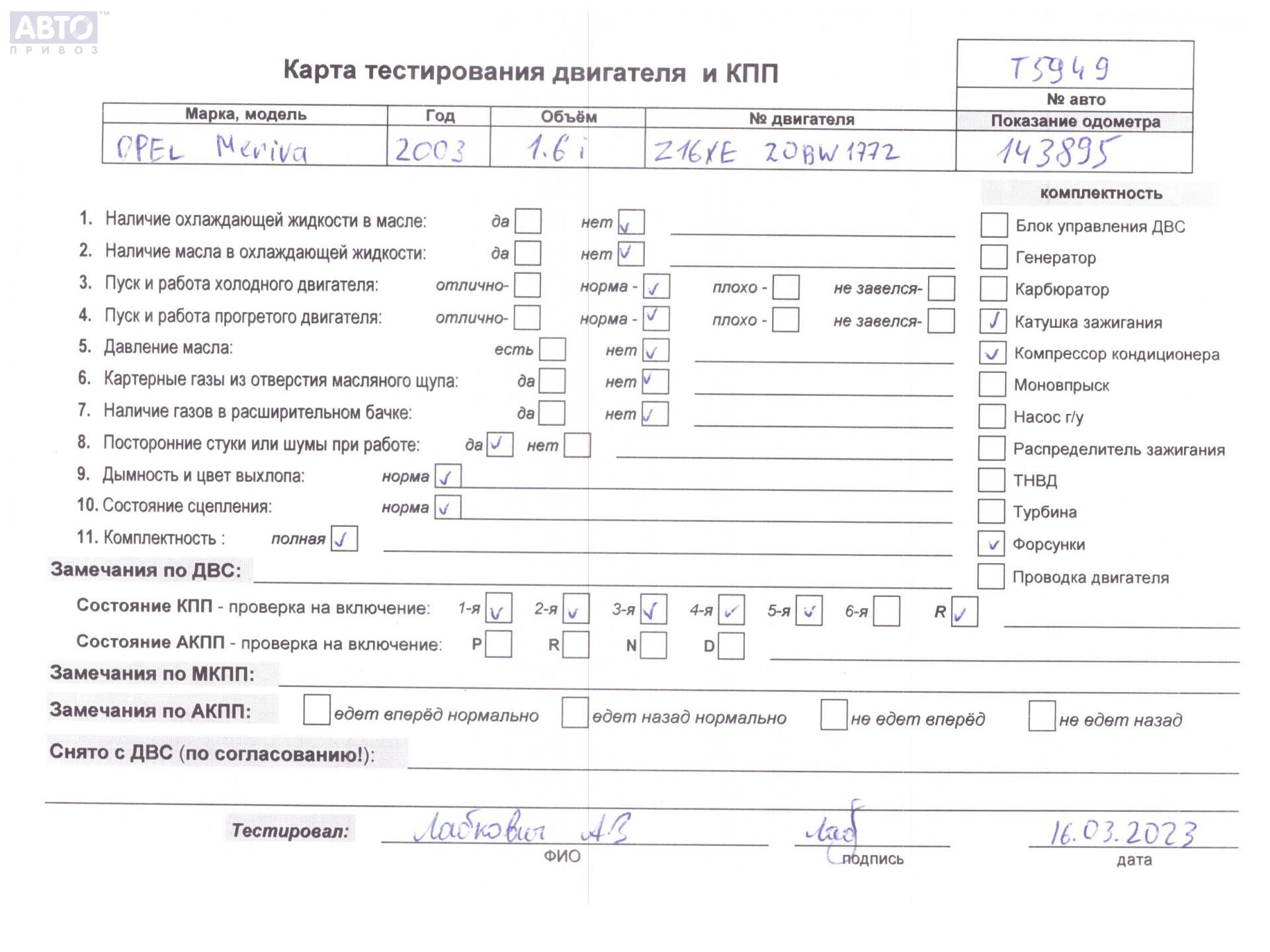 | Марка / Модель / Год: | Opel Meriva A (2003-2010) 2003 |