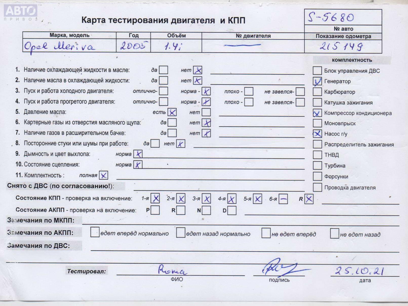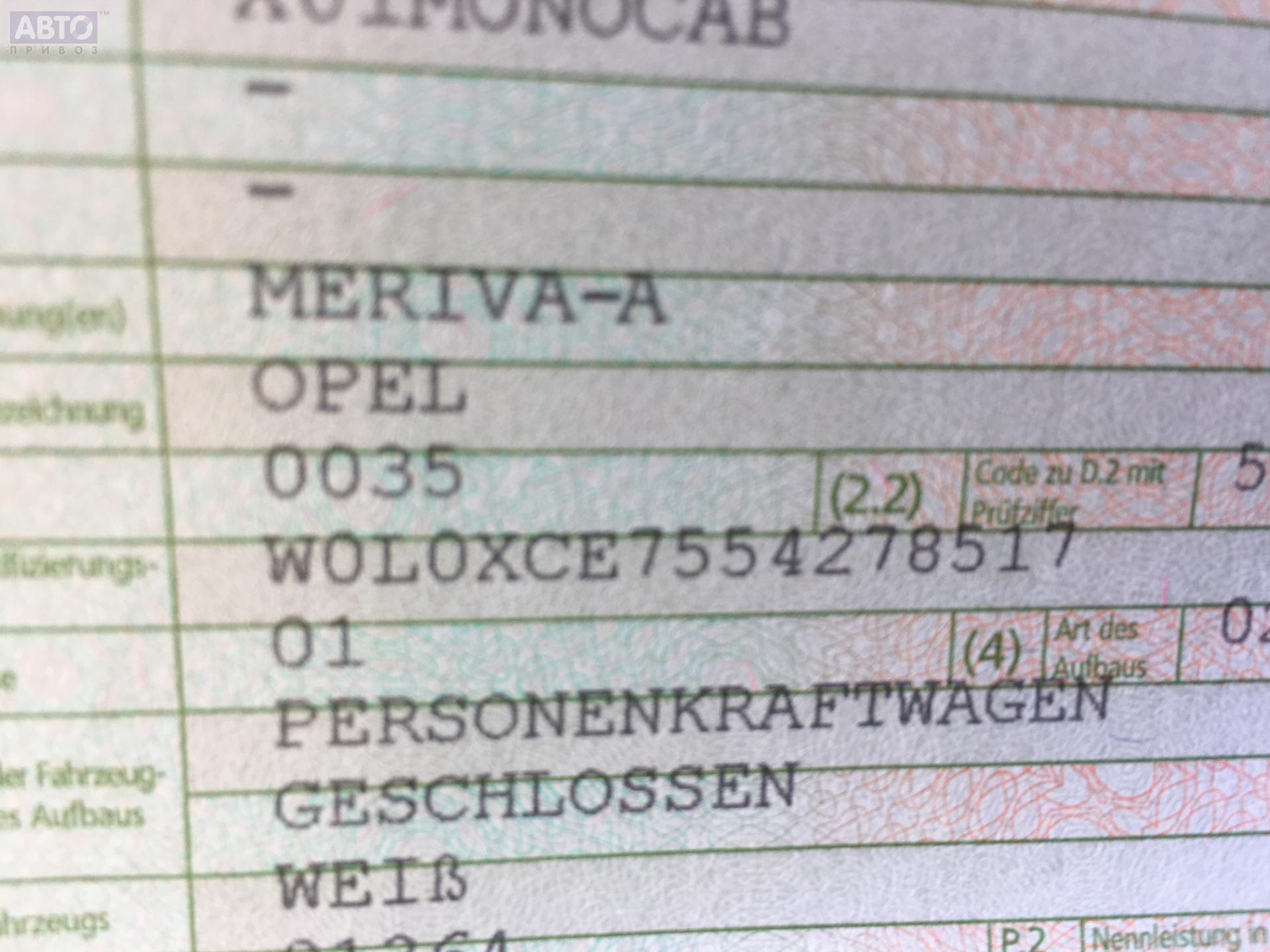 | Марка / Модель / Год: | Opel Meriva A (2003-2010) 2005 |