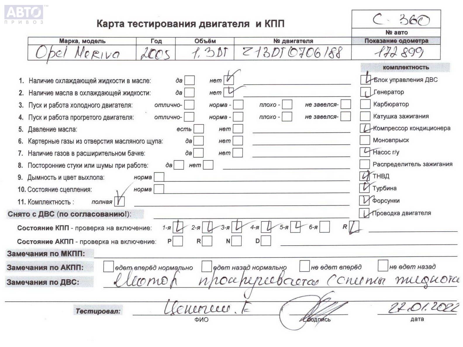 | Марка / Модель / Год: | Opel Meriva A (2003-2010) 2005 |