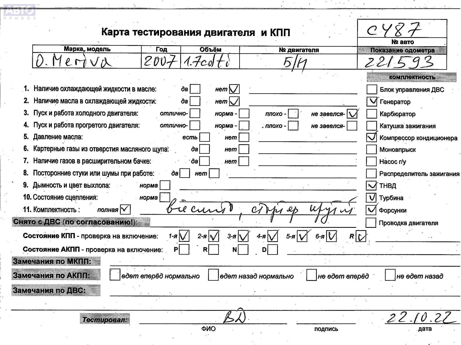 | Марка / Модель / Год: | Opel Meriva A (2003-2010) 2007 |