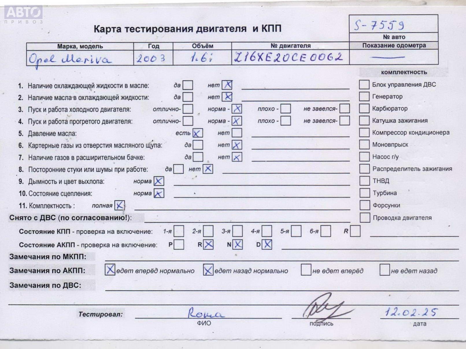 | Марка / Модель / Год: | Opel Meriva A (2003-2010) 2003 |